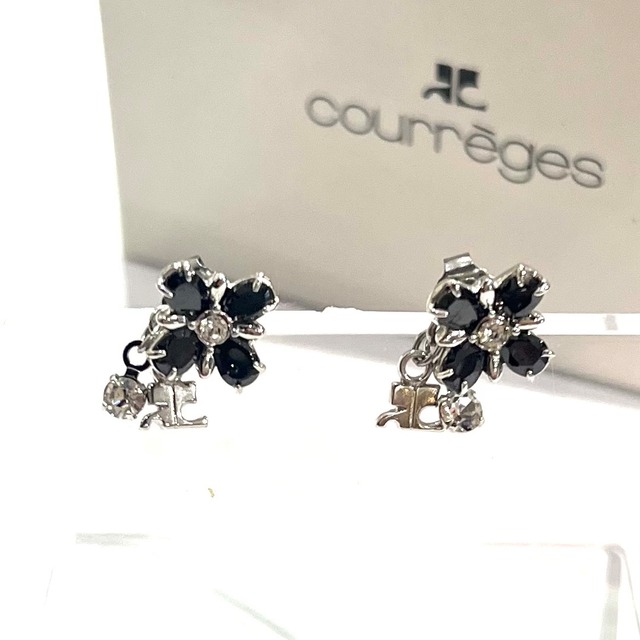 【Courrèges】2099 フランスパリ老舗 クレージュシルバー キャッチロゴピアス フラワー×シルバー/上品な存在感/ヴィンテージ アクセサリーニットコートギフトにもアクセサリー華奢