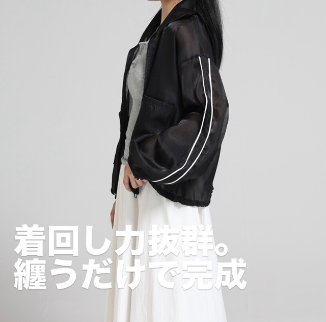 即発送❤︎軽やかシアー素材のジップブルゾン|透け感×光沢が魅力の大人カジュアルライトアウター|ポリエステル|ブラック|春夏秋対応|日よけ・冷房対策にも最適 2025ファッション