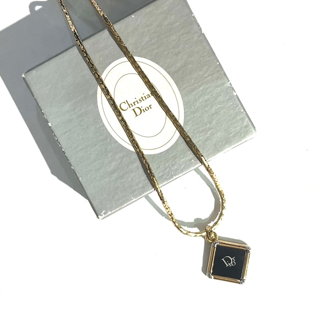 【Christian Dior】1900 DIORブラックスクエア ネックレス/ヴィンテージ ディオール/ゴールド×ブラック/エレガントな存在感/44cm 1980年代 ロングネックレスメンズアクセサリー