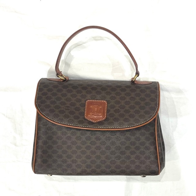 【CELINE】1860 セリーヌ マカダム柄 二重フラップ ハンドバッグ ブラウン レザー×PVC ゴールド金具 ヴィンテージ人気 二重蓋 oldceline 福岡