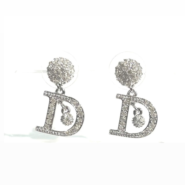 【DIOR】2055 Christian Dior 80〜90s ヴィンテージ ピアス/Dロゴ ストーン 揺れるデザイン/オールドディオール黄金期のアイコニックモチーフ/冬コーデ 格上げアクセサリー/ギフト・結婚式・パーティーにも ヴィンテージピアス