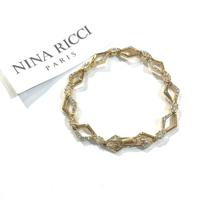 【NINA RICCI】 2145 フランスの老舗 ニナリッチ 90年代ヴィンテージ ひし形×ストーンゴールドチェーンブレスレット 18cm/90s 手元が一気に華やぐフレンチエレガンス ゴールドブレスレット