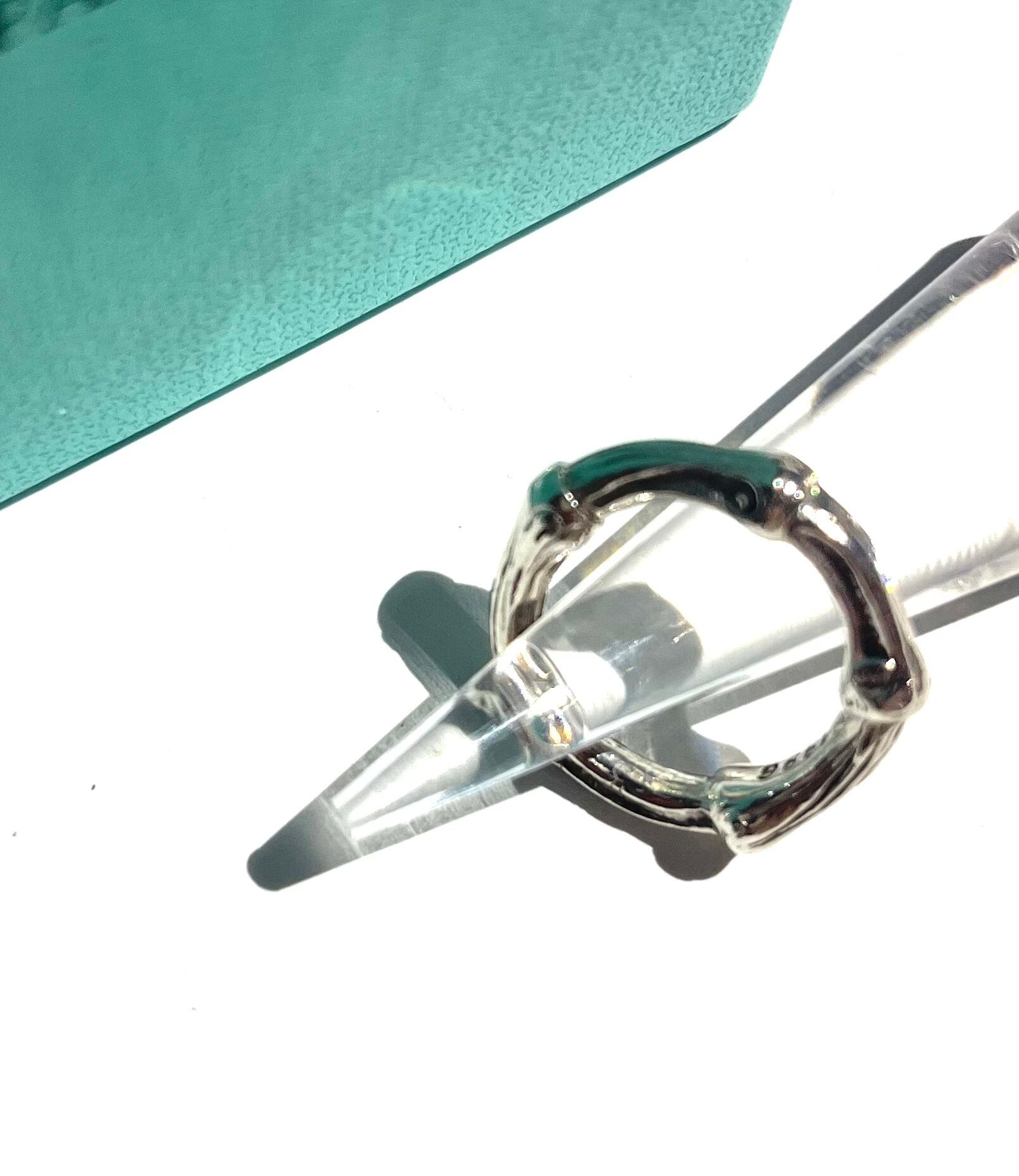 1996年、ティファニーが手がけたバンブーモチーフのリング。竹の節を思わせる有機的な曲線は、洗練の中にどこか温かみを感じさせます。