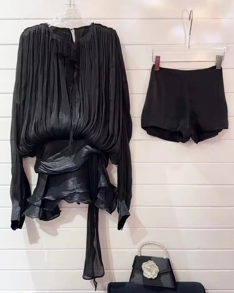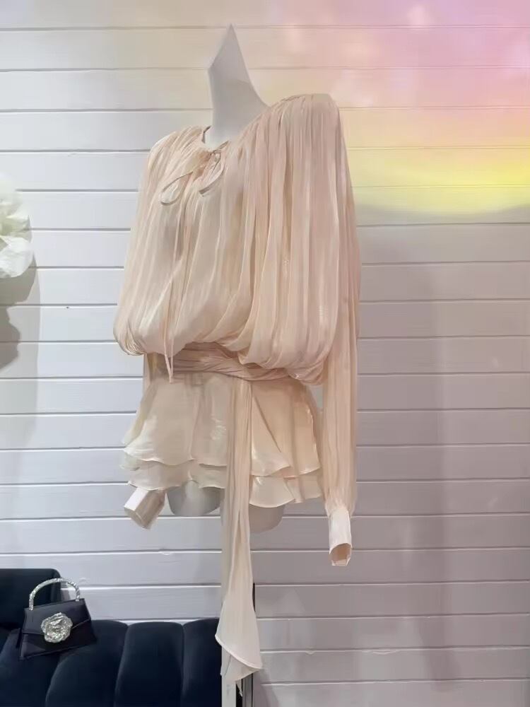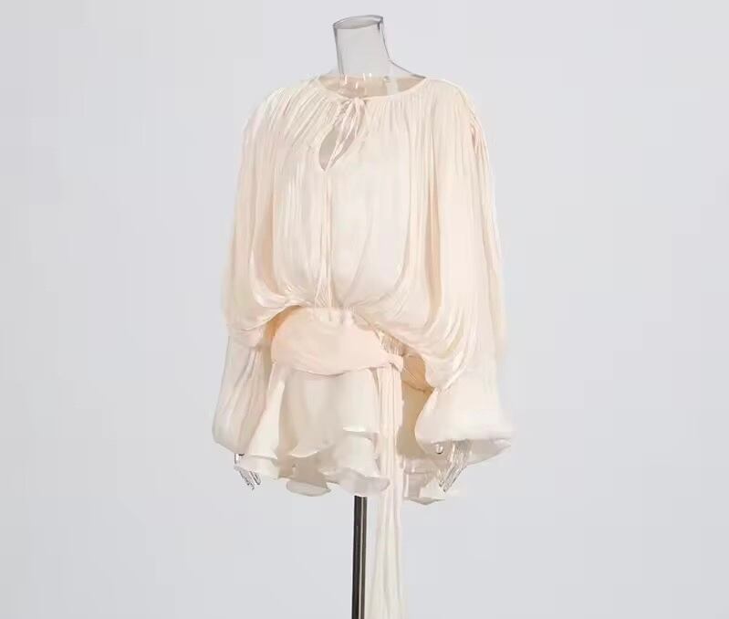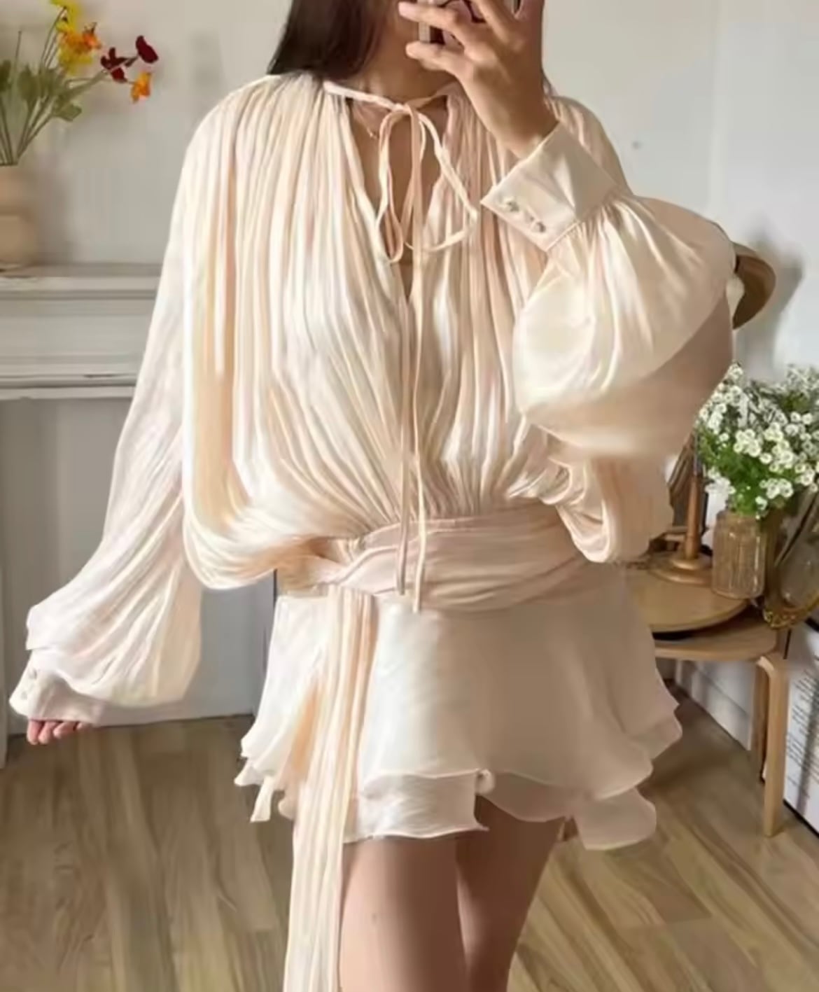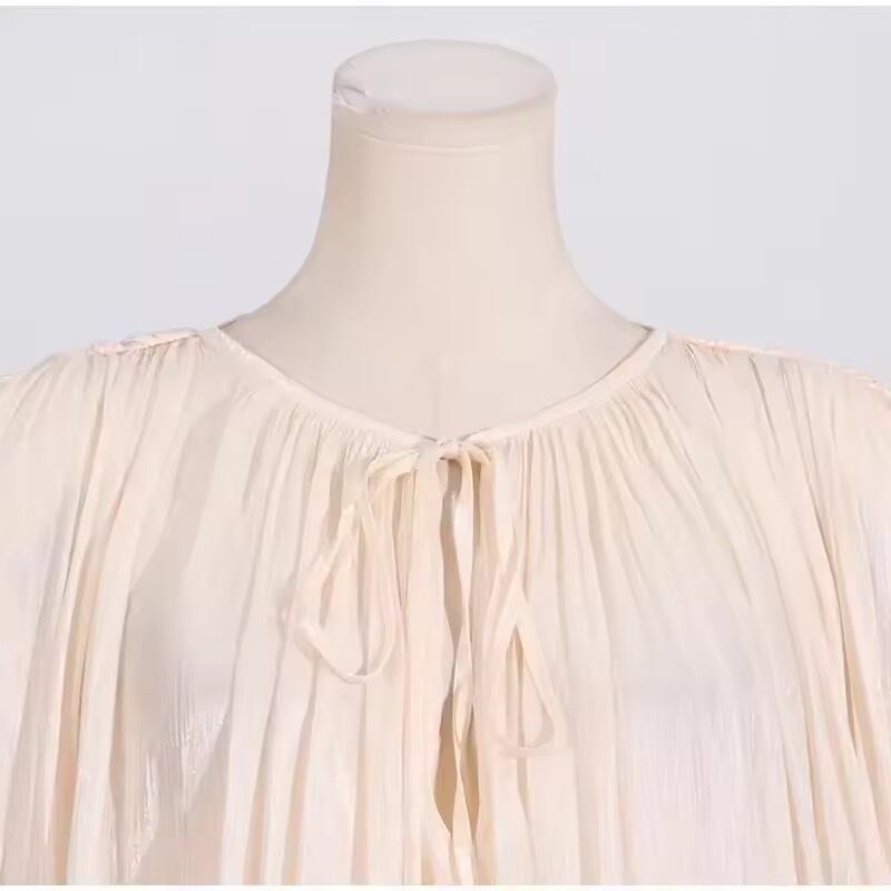 2色♡ご注文殺到中!艶やか華奢プリーツ ブラウス リボン付き ゆったり フリーふんわりゆったり夏トップス デニム結婚式