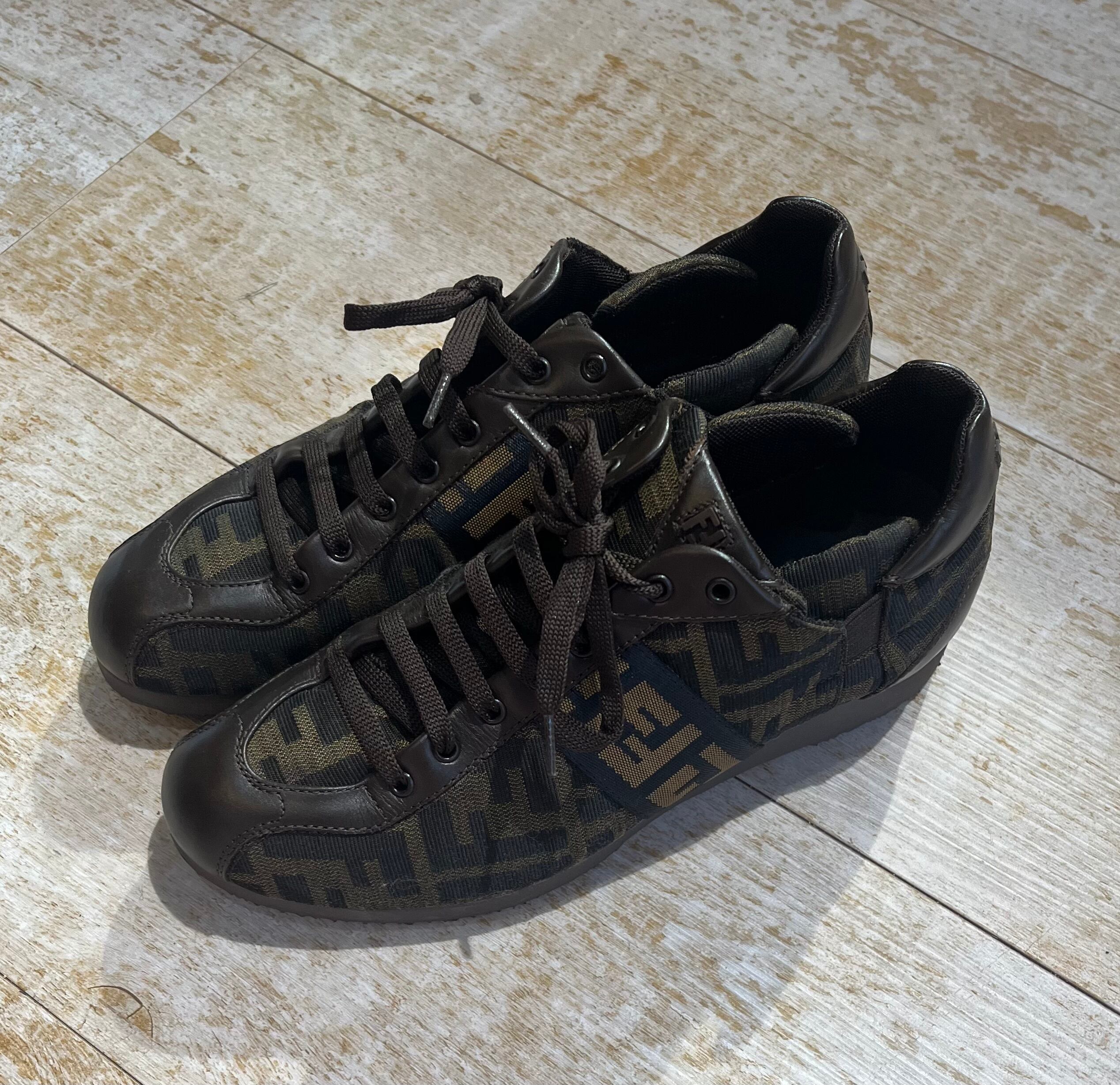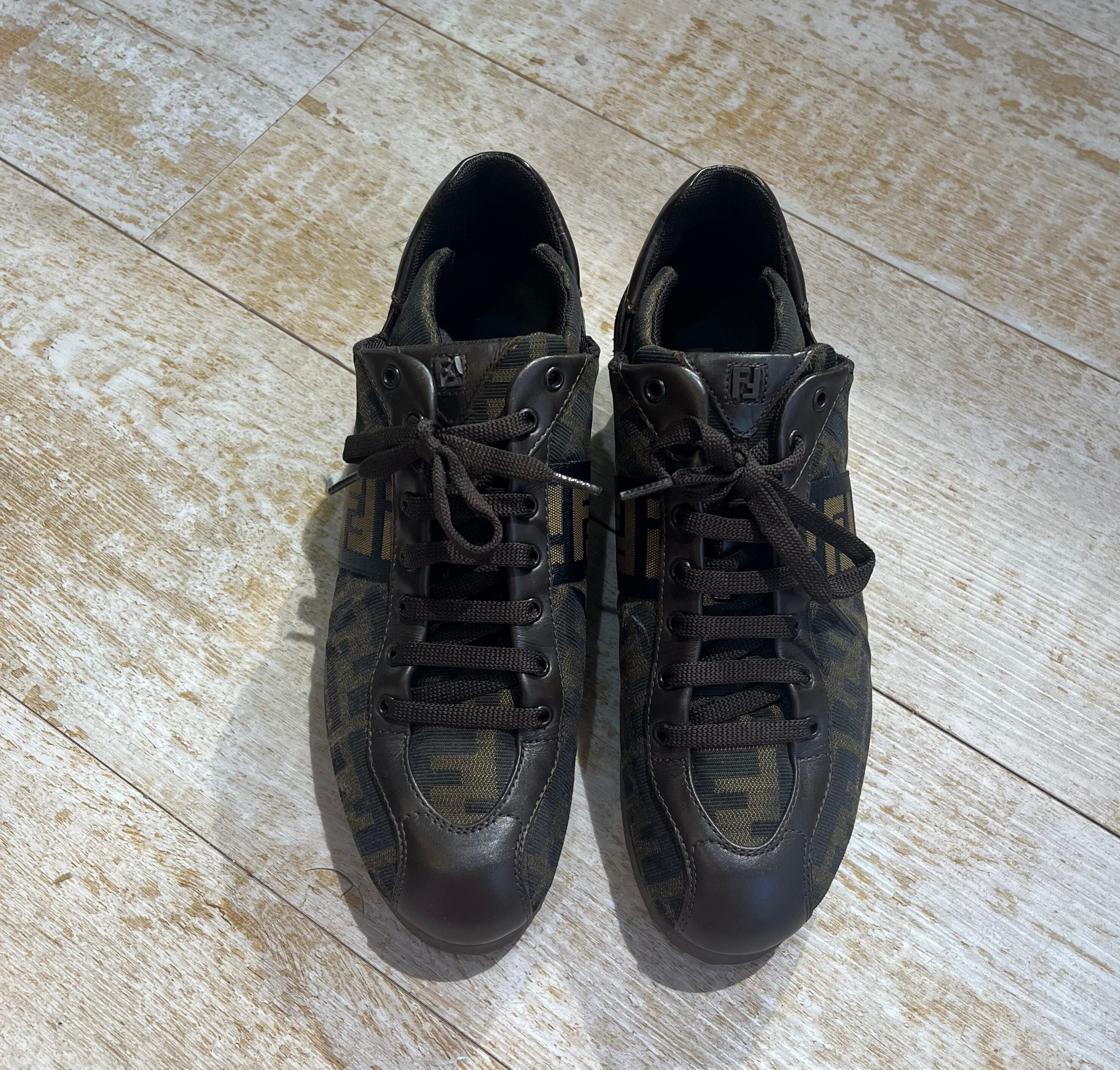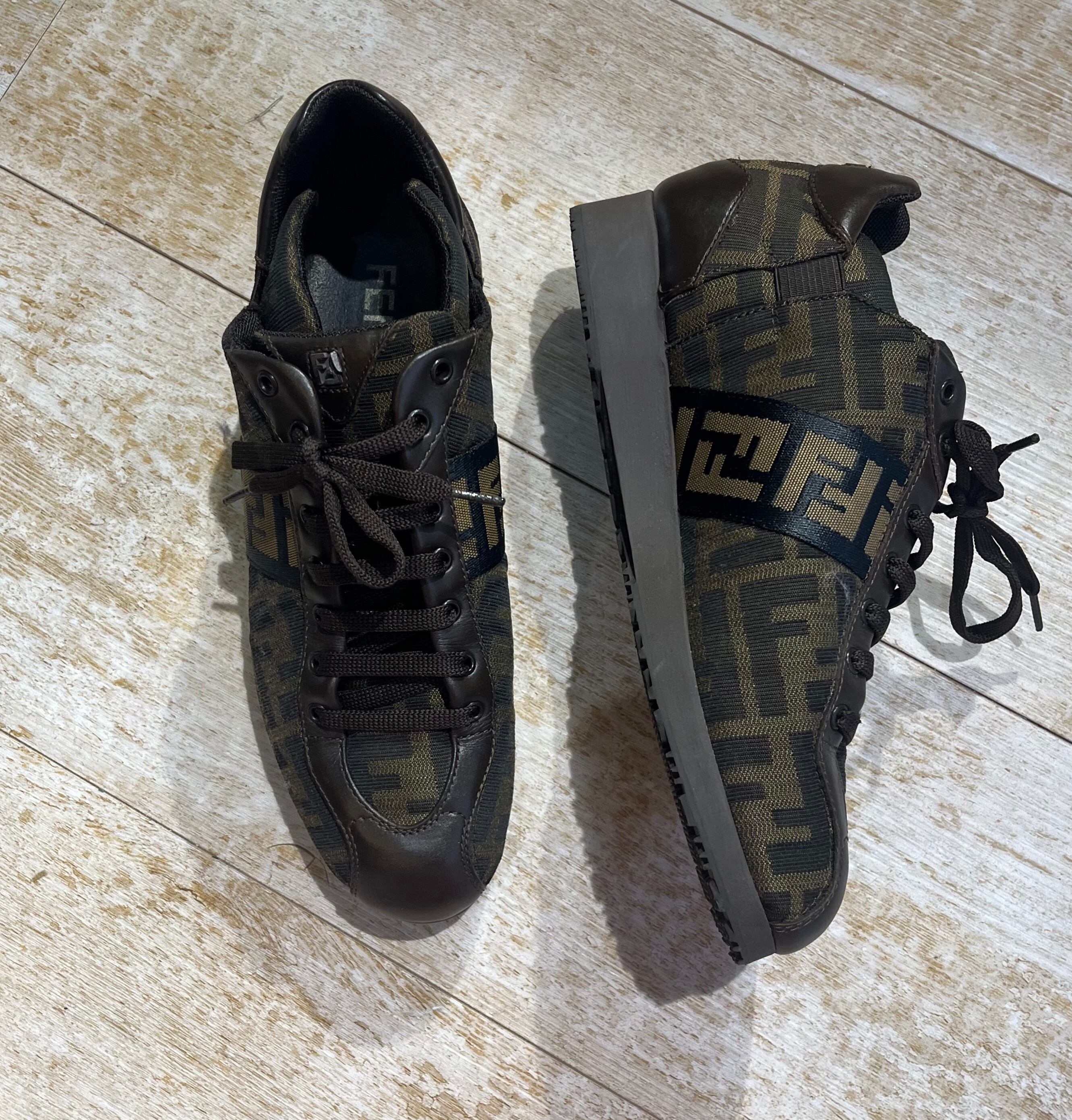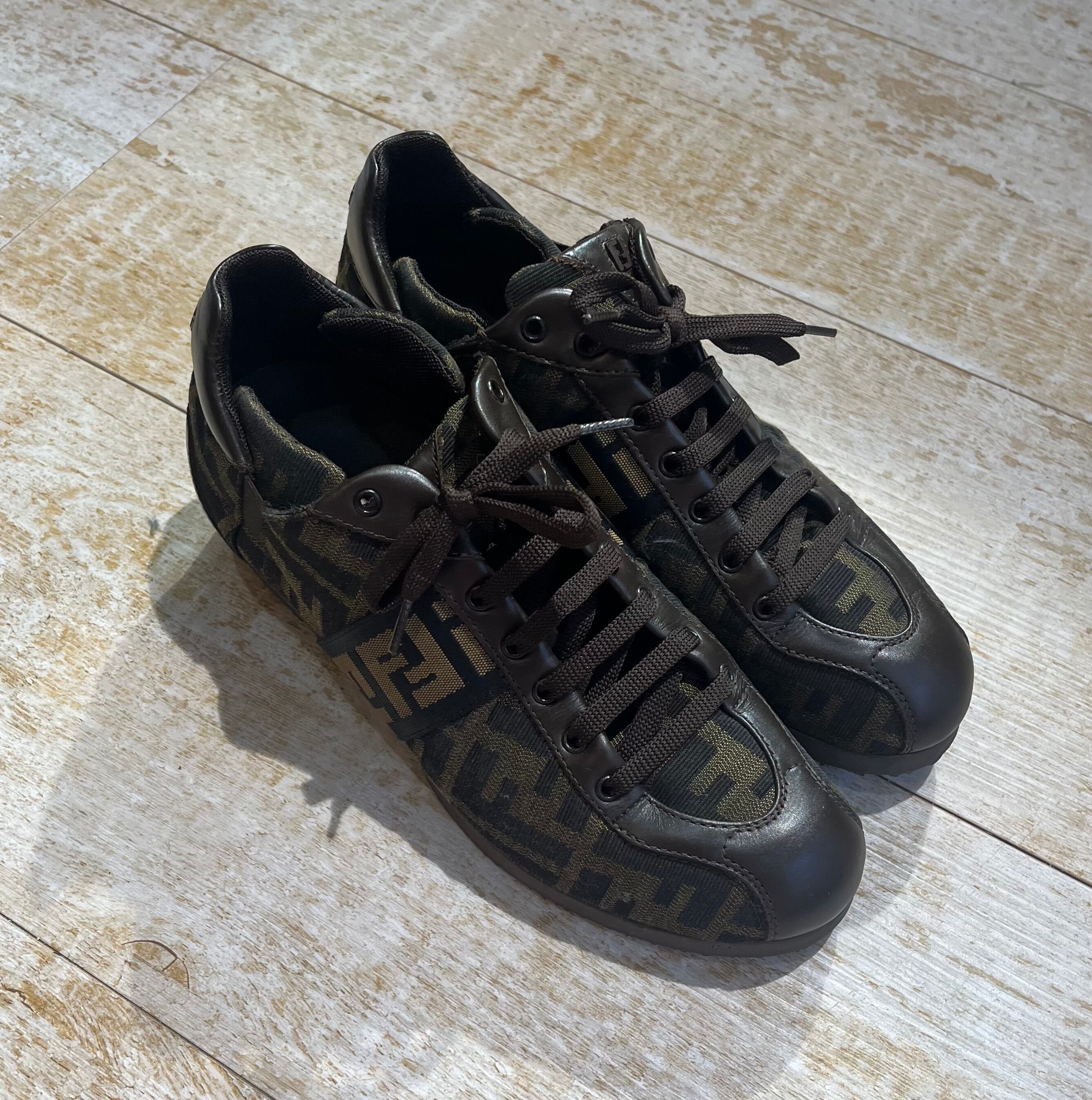 「クラシカルなFENDIらしさが光るFFズッカ柄スニーカー。落ち着いたカラーリングとスマートなシルエットが絶妙に融合し、カジュアルにもモードにも映える一足です。