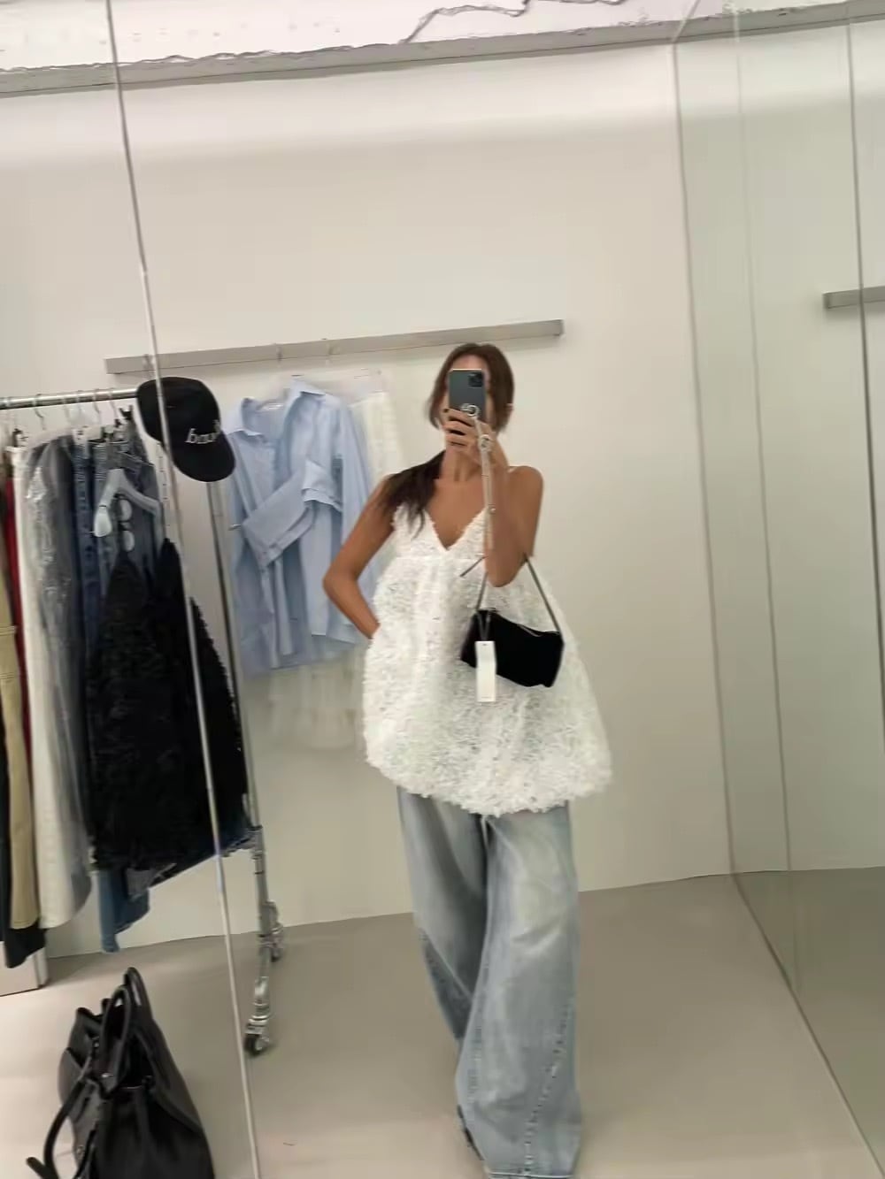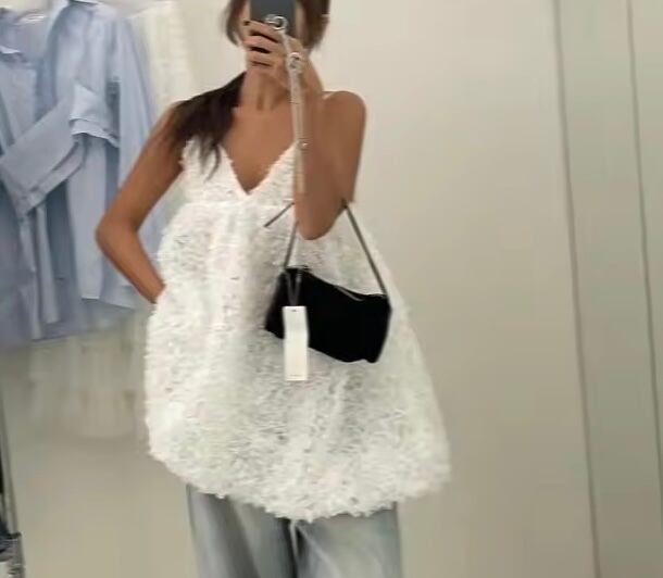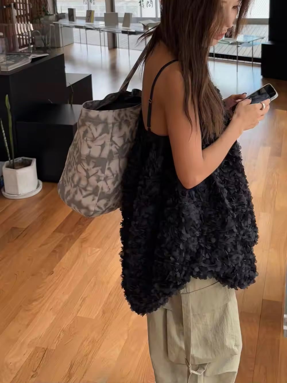 2色纏うだけで主役級。立体フラワーが咲き誇るエアリーワンピースチュニック トップス キャミデニム フリー ゆったり