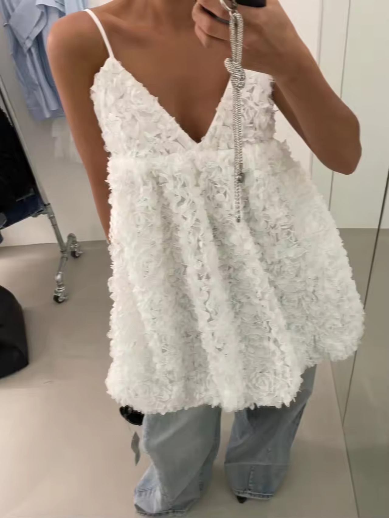 まるで花びらを纏ったような、夢のように可憐な立体フラワーワンピース。