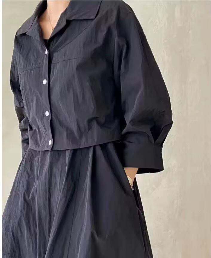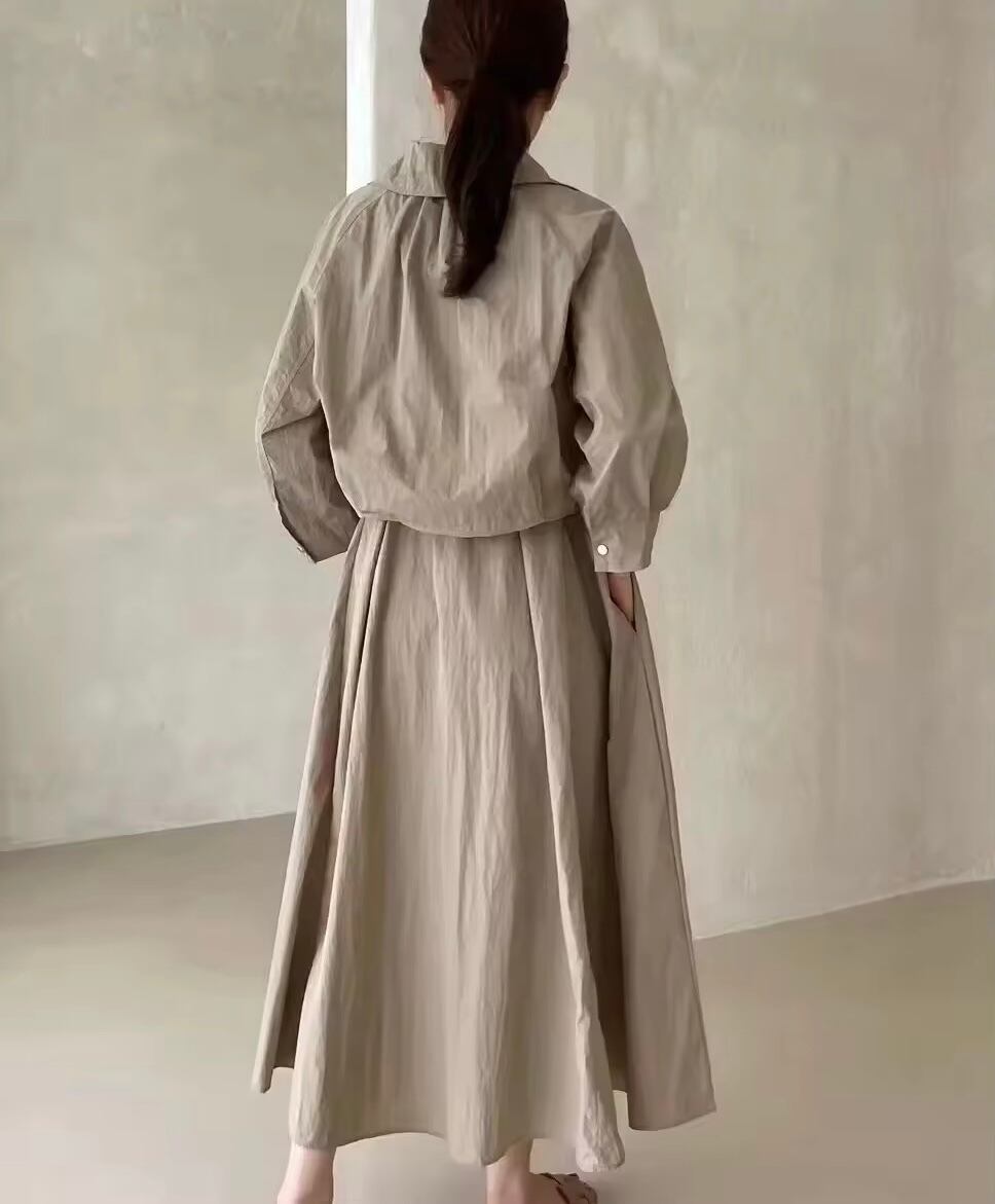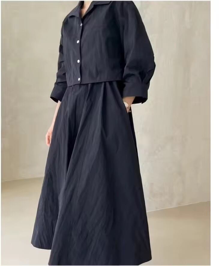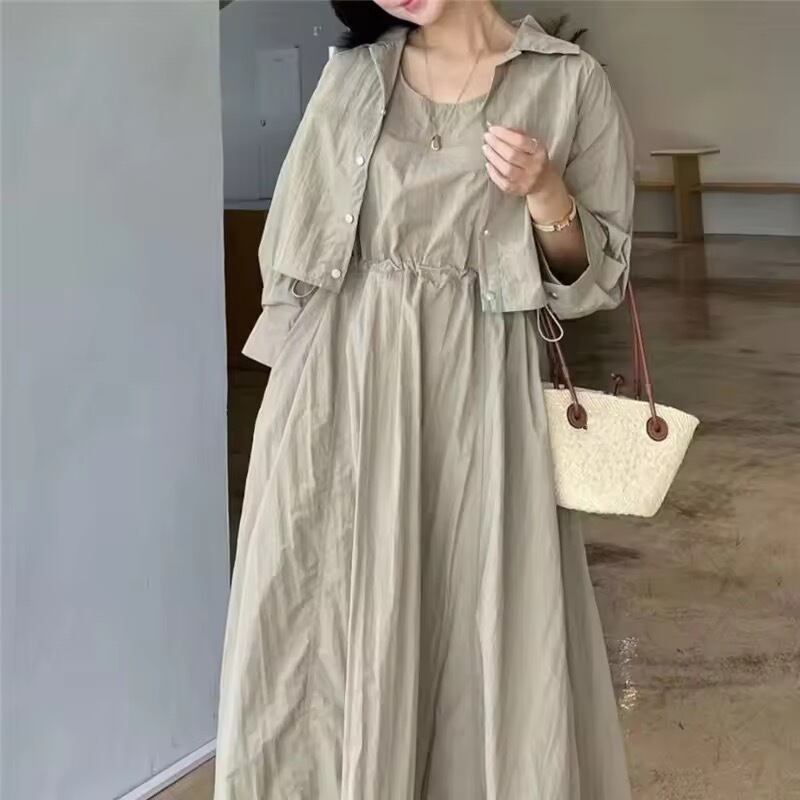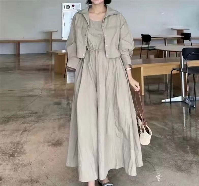 セットアップ/ワンピース/羽織/ジャケット/2点セット/体型カバー/ナチュラルコーデ/フリーサイズ/春夏/リラックスコーデ/韓国ファッション/カフェコーデ/旅行コーデ/大人カジュアル/ブラック/ベージュ