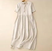 リネン風ワンピース/五分袖ワンピース/ゆったりワンピース/大きいサイズ/体型カバー/ナチュラルコーデ/夏服/リネン調/涼しいワンピース/レディースワンピース/旅行コーデ/休日コーデ/ナチュラルファッション/カフェコーデ