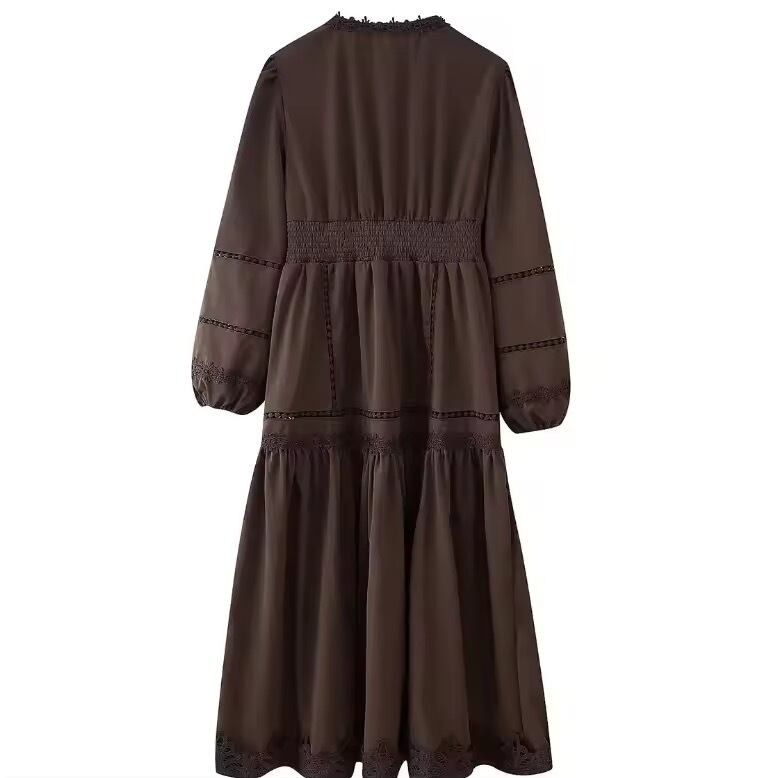 ロングワンピース/レースワンピース/コットンワンピース/体型カバー/フレアワンピース/ナチュラルワンピース/大人可愛い/春夏ワンピース/ホワイトワンピース/ブラウンワンピース/リゾートワンピース/旅行コーデ