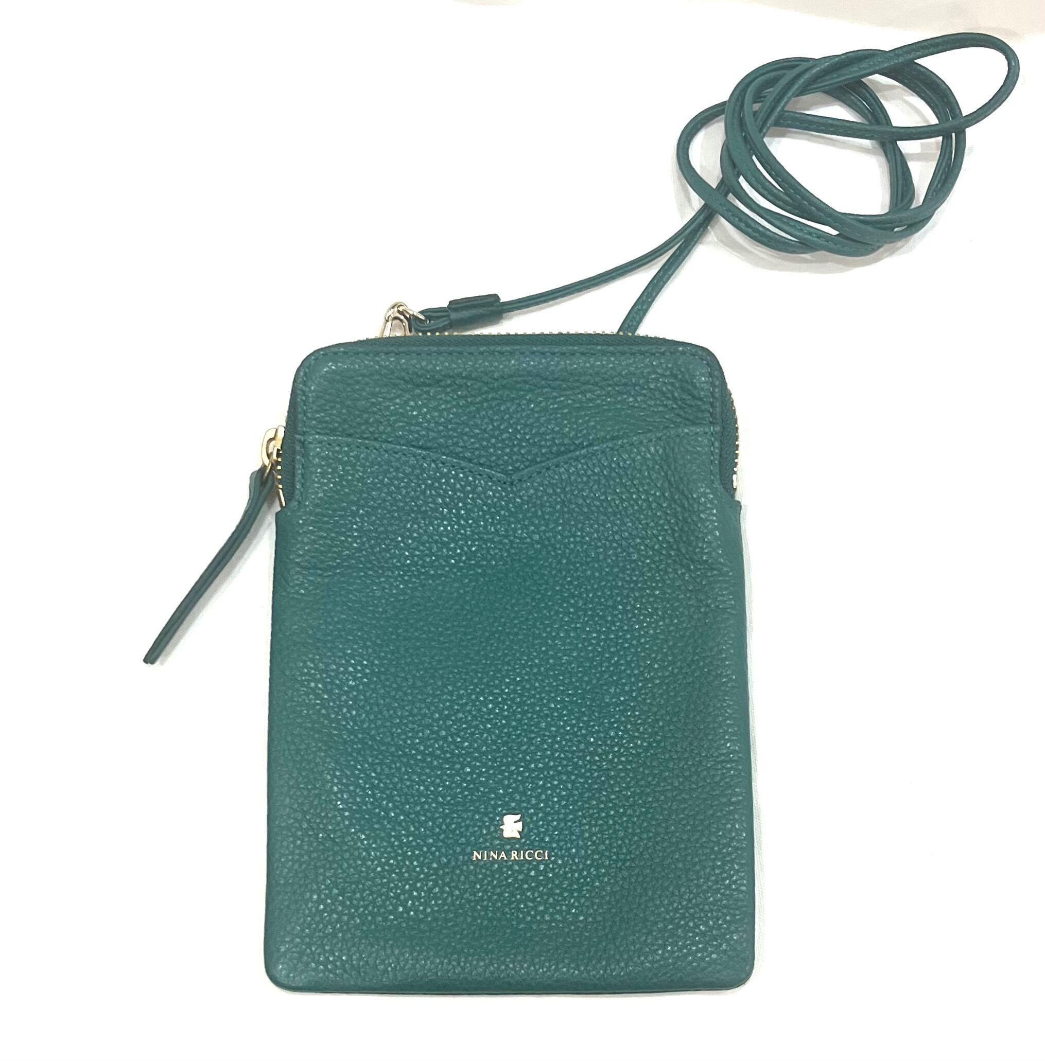 1813 【NINA RICCI 】VINTAGEニナリッチ ヴィンテージ スマホショルダー ミニバッグ グリーン レザー 斜めがけ 財布ショルダー 大人コーデに ポーチ 本革 バッグ