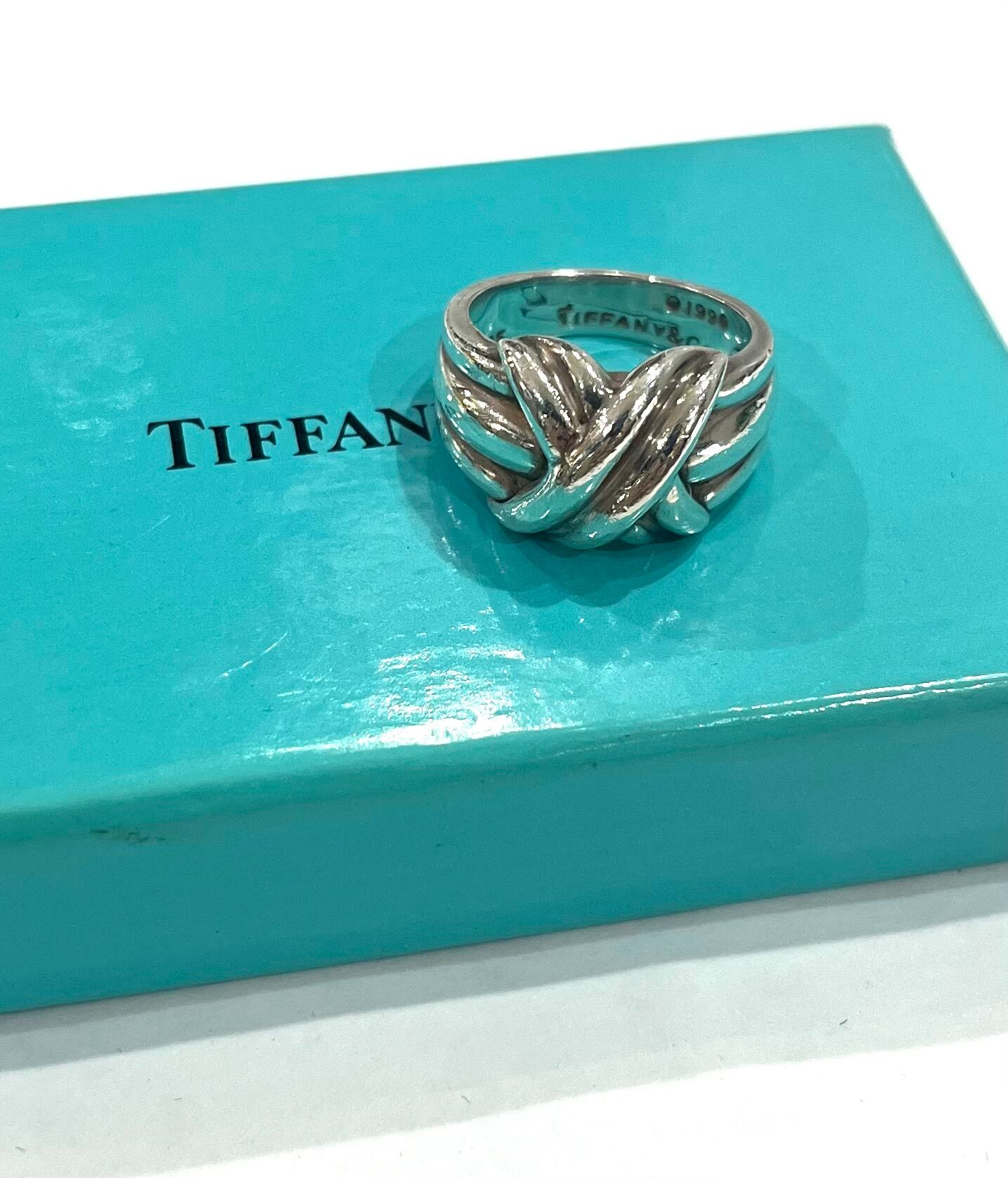 1814 唯一無二の存在感 。TIFFANY & Co. tiffanyティファニー幅広ノット インターロッキングリング 指輪リングシルバーsilver925 tiffany andcoピンキーリング ギフト メンズ大きい