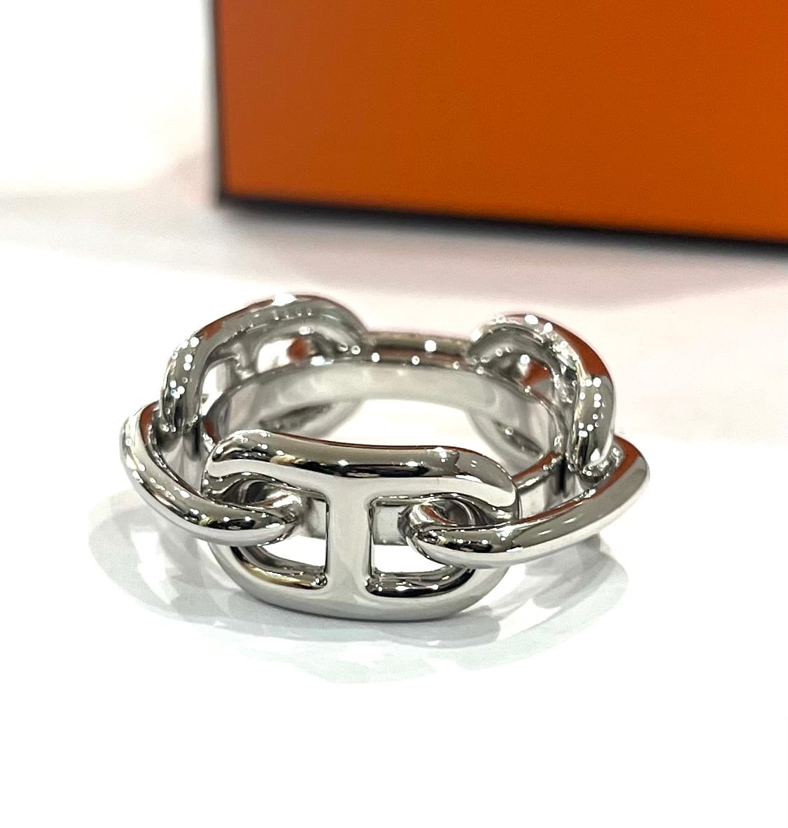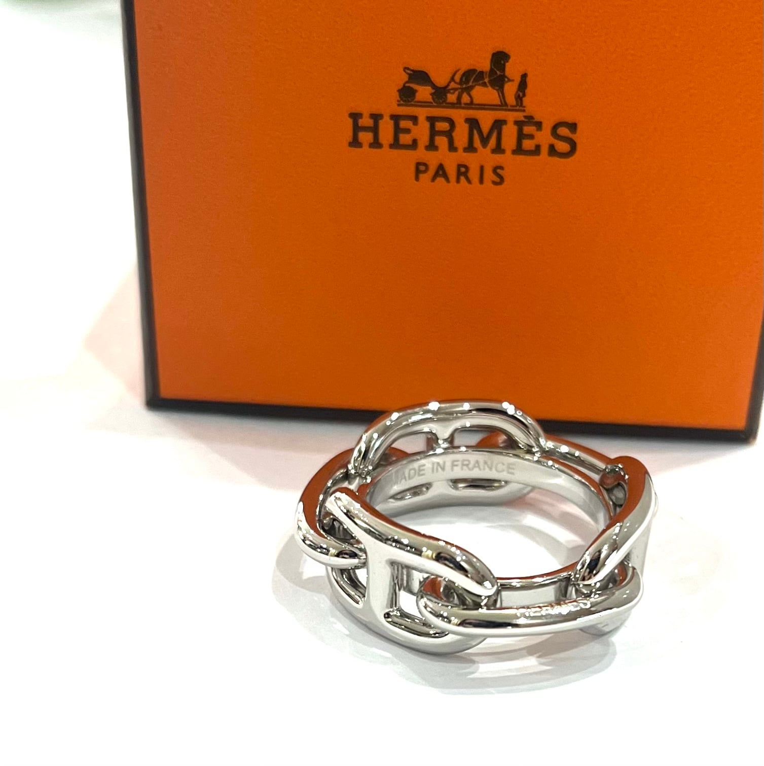 1821 再入荷レアなシルバーカラーHERMES スカーフリングVINTAGE シェーヌダンクルスカーフリング リング 指輪 メンズ レディースアンティーク クラシカル ゴールド ジュエリー スカーフ ストールシルバー