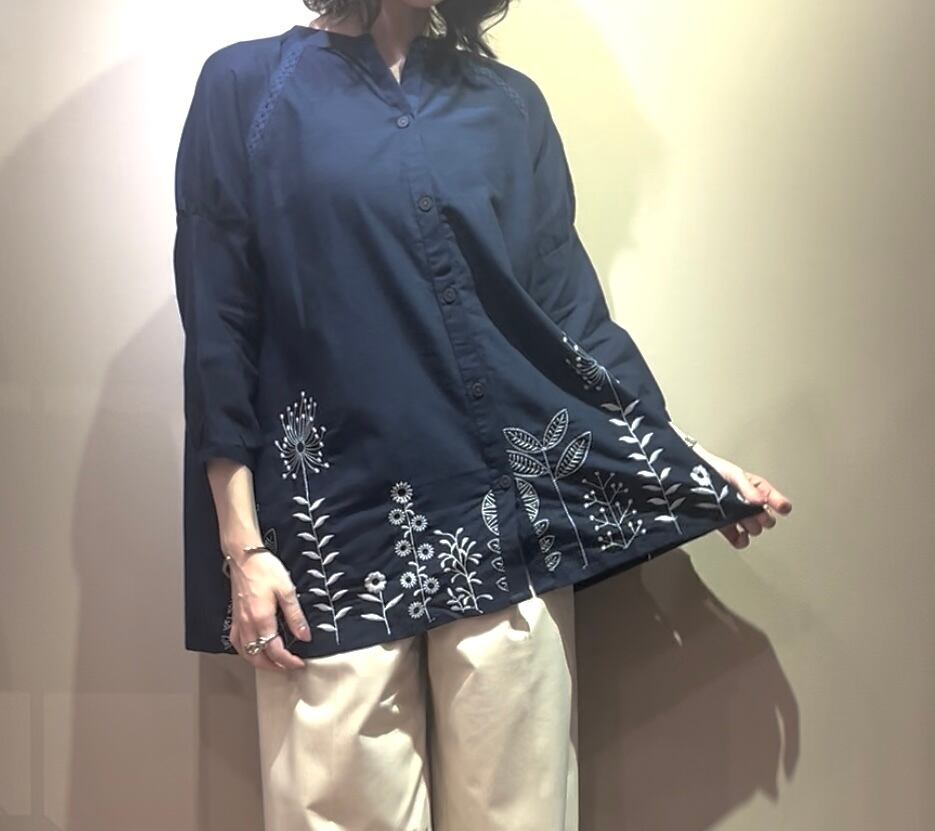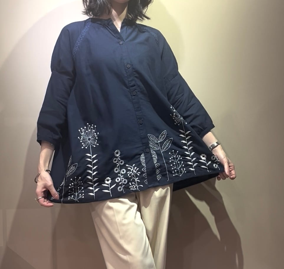 福岡/天神/福岡ファッション/福岡レディース/インド綿/ボタニカル刺繍/ハンドメイド風/体型カバー/ナチュラルコーデ/チュニックシャツ/春夏秋/40代ファッション/50代ファッション/60代ファッション/70代ファッション