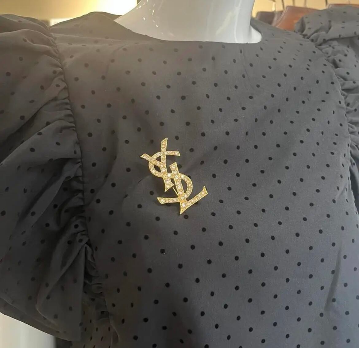 サンローランの象徴的なロゴを贅沢にあしらったヴィンテージブローチ。