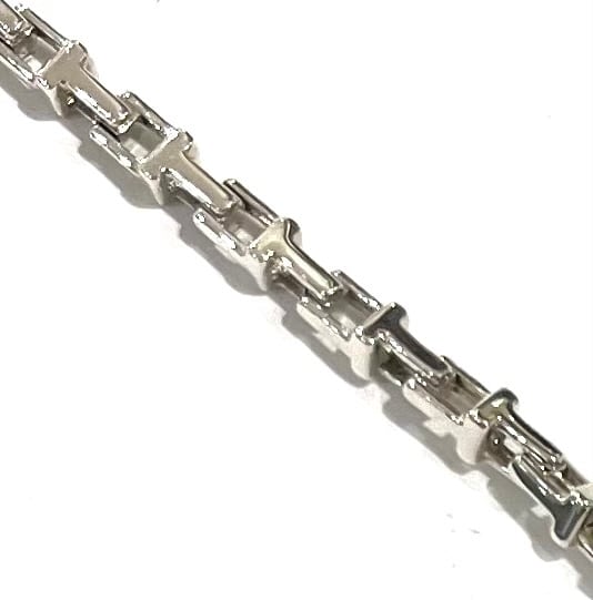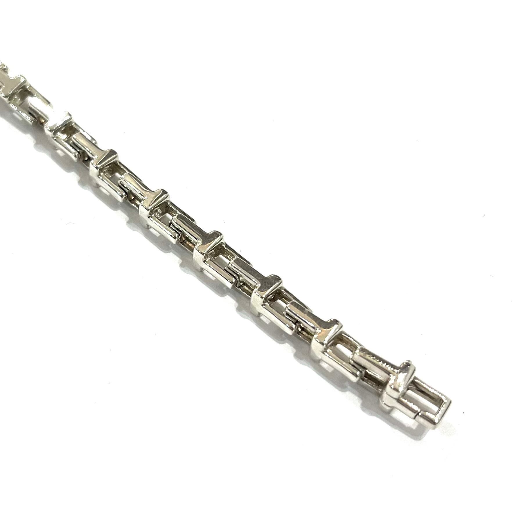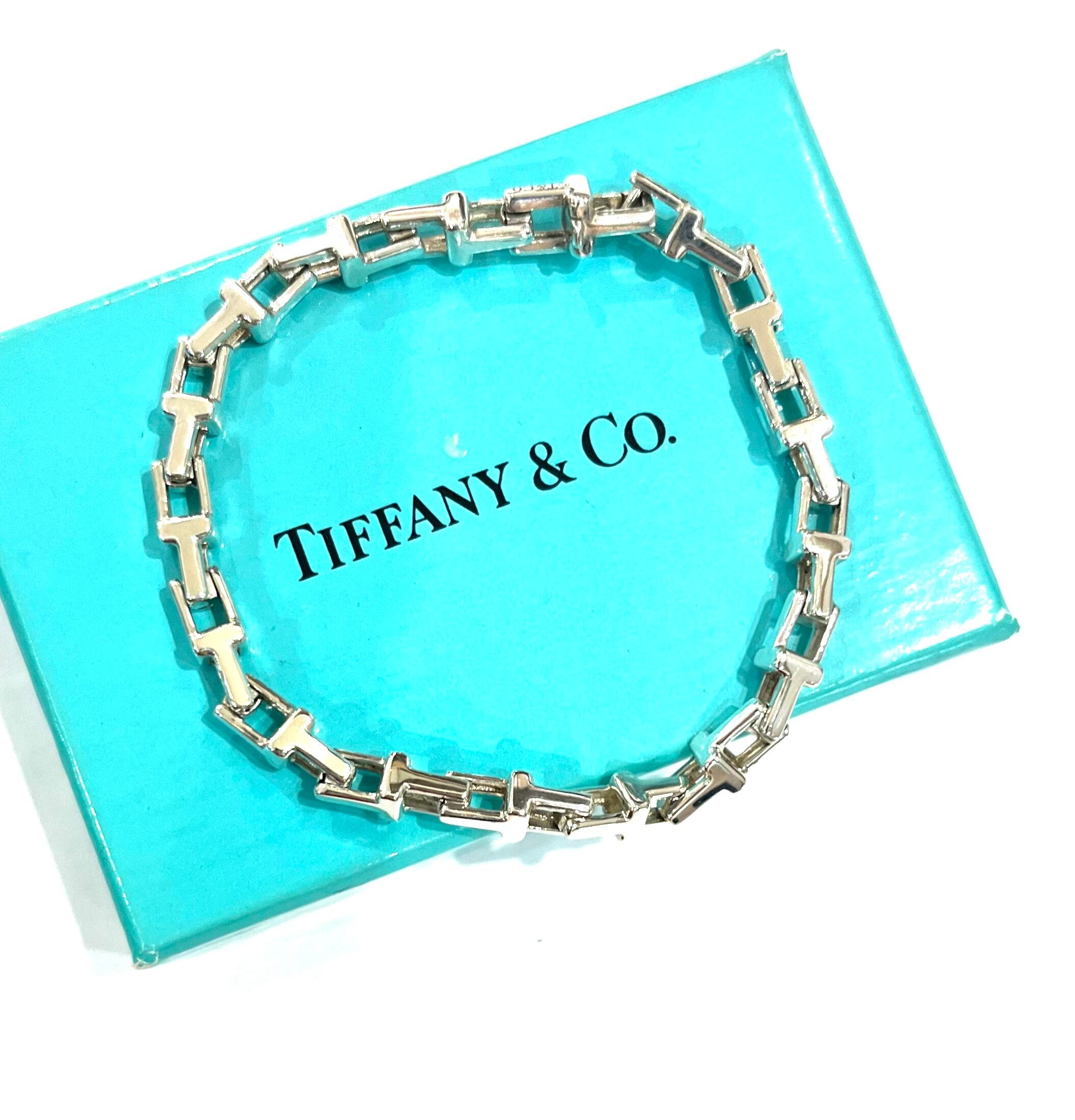 ティファニーのアイコニックな“T”が連なった、モダンで洗練されたデザインのシルバーブレスレットです。