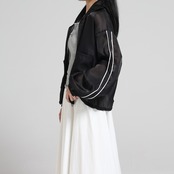 さりげない透け感と軽やかな光沢が目を引く、大人のためのジップブルゾン。