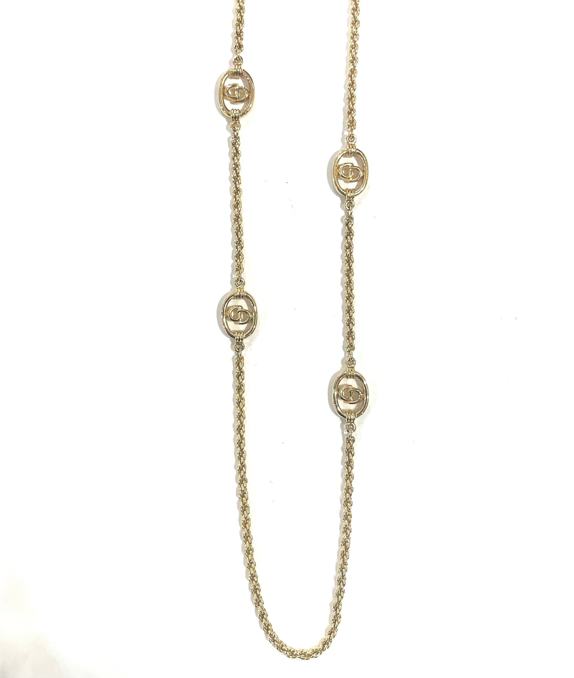 1836 【Christian Dior 】DIORLong necklace vintege ロングCDロゴチェーンネックレス クリスチャンディオール ヴィンテージ アンティーク アクセサリーリボン 結婚式 クラシカル ブランド