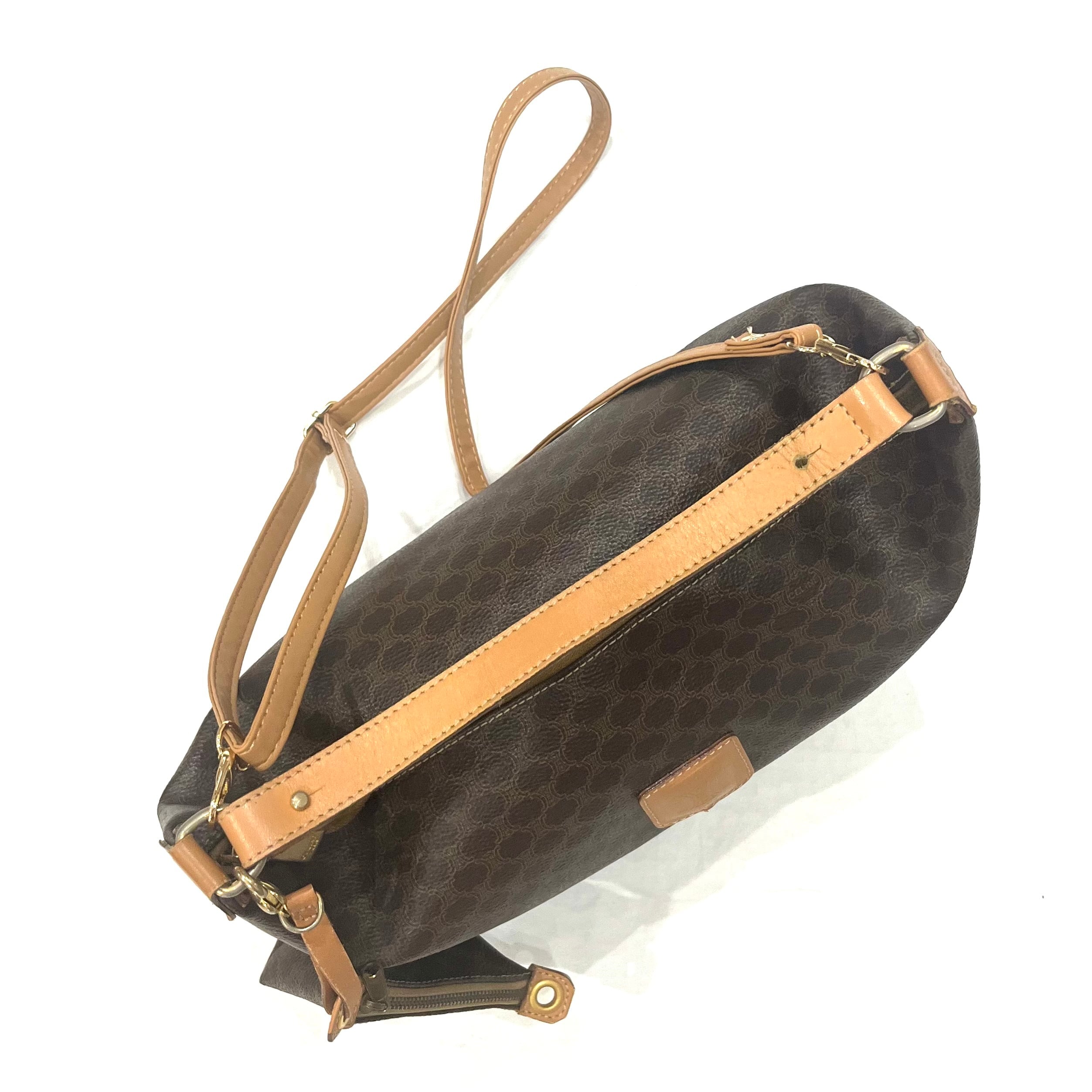 【OLDCELINE 】CELINEセリーヌ マカダム柄 ショルダーバッグ ポーチチャーム付き ヴィンテージブラウン 斜め掛け 旅行 通勤 通学」