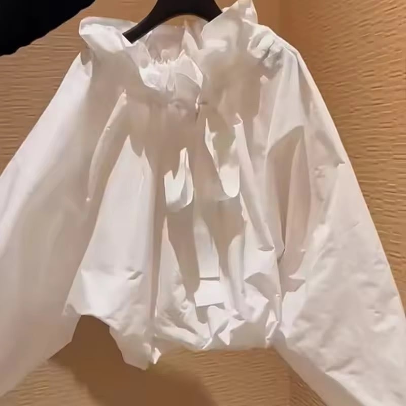 今季はふんわりラッフル。ホワイトフリルリボンブラウス M・L・XL ゆったりフェミニントップス 秋冬コーデ レディース シャツ トップス ニット