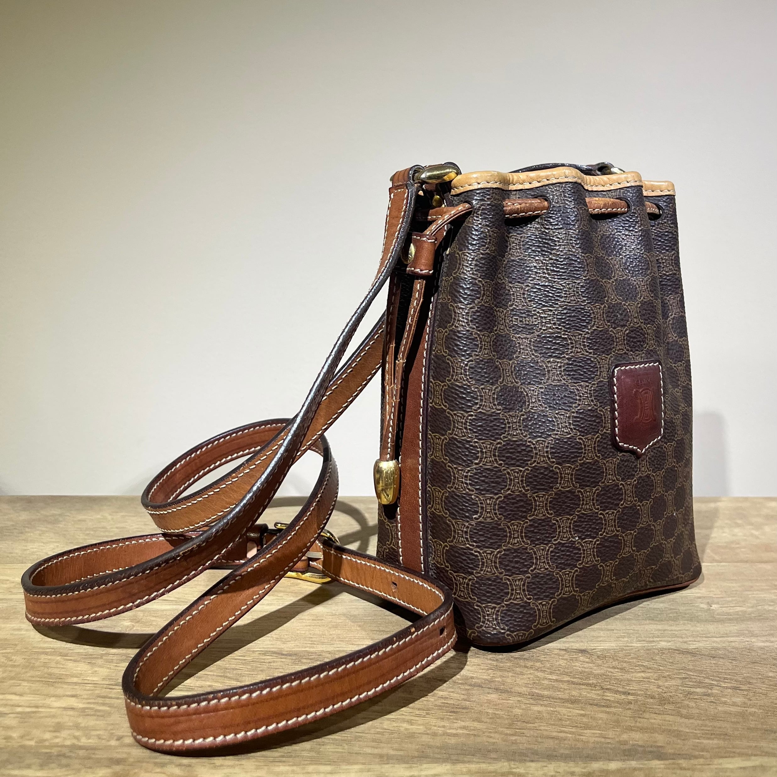 CELINE(セリーヌ)の人気ヴィンテージライン、マカダム柄の巾着ショルダーバッグです。