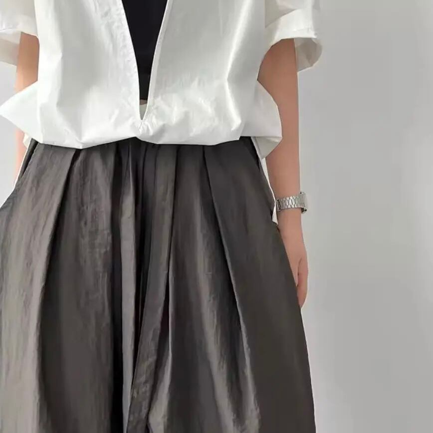 ワイドシルエットで体型カバーしながら、ゆったりとした抜け感あるコーディネートが楽しめます。