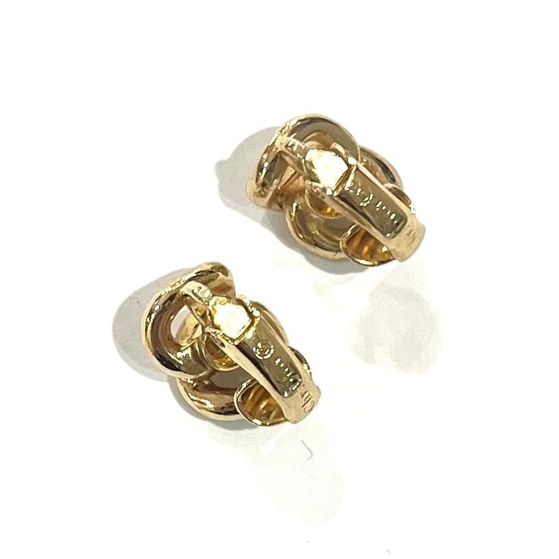 本作は、そのDNAを受け継ぐ1980〜90年代制作のヴィンテージイヤリング。ゴールドトーンのメタルをやわらかくツイストさせ、片側にクリスタルをきらりとあしらったミニマルなデザインです。サイズは縦約1.3cm×横約1.0cm。耳たぶにそっと沿う小ぶり感で、日常にもフォーマルにも溶け込みます。
