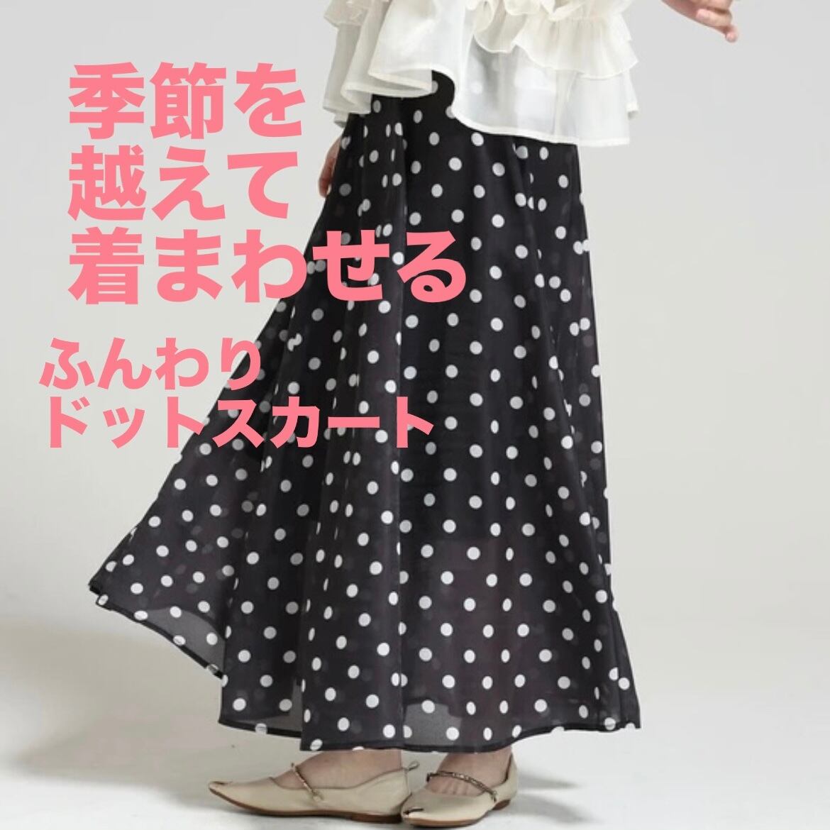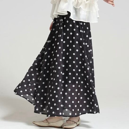 ドット柄スカート / シアースカート / ロングスカート レディース / ウエストゴム スカート / 水玉ロングスカート / 体型カバー スカート / 春夏ロングスカート / 秋冬スカート / 軽やかスカート / 大人可愛いスカート