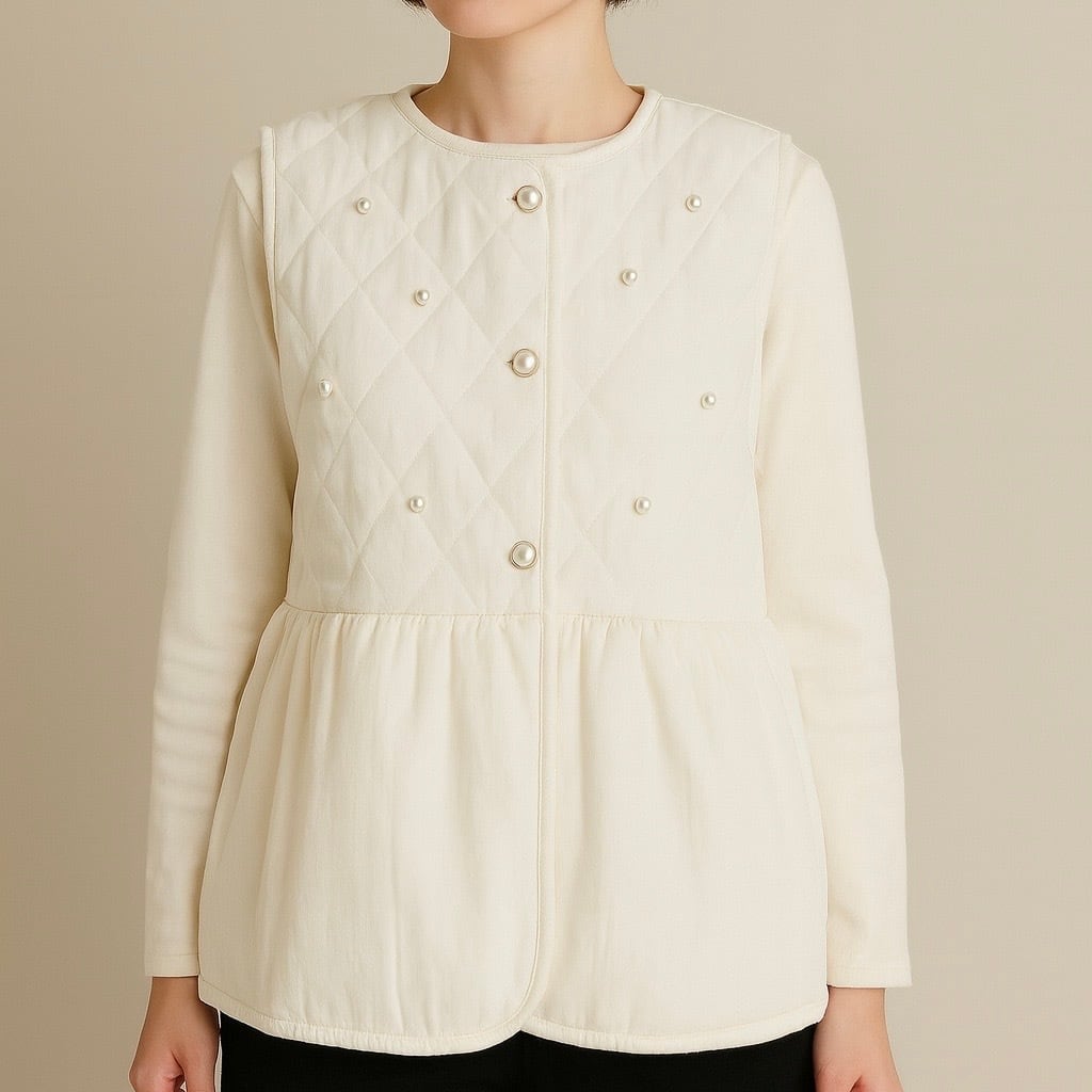 華やぎを纏う、大人のためのパール付きキルティングフレアベスト