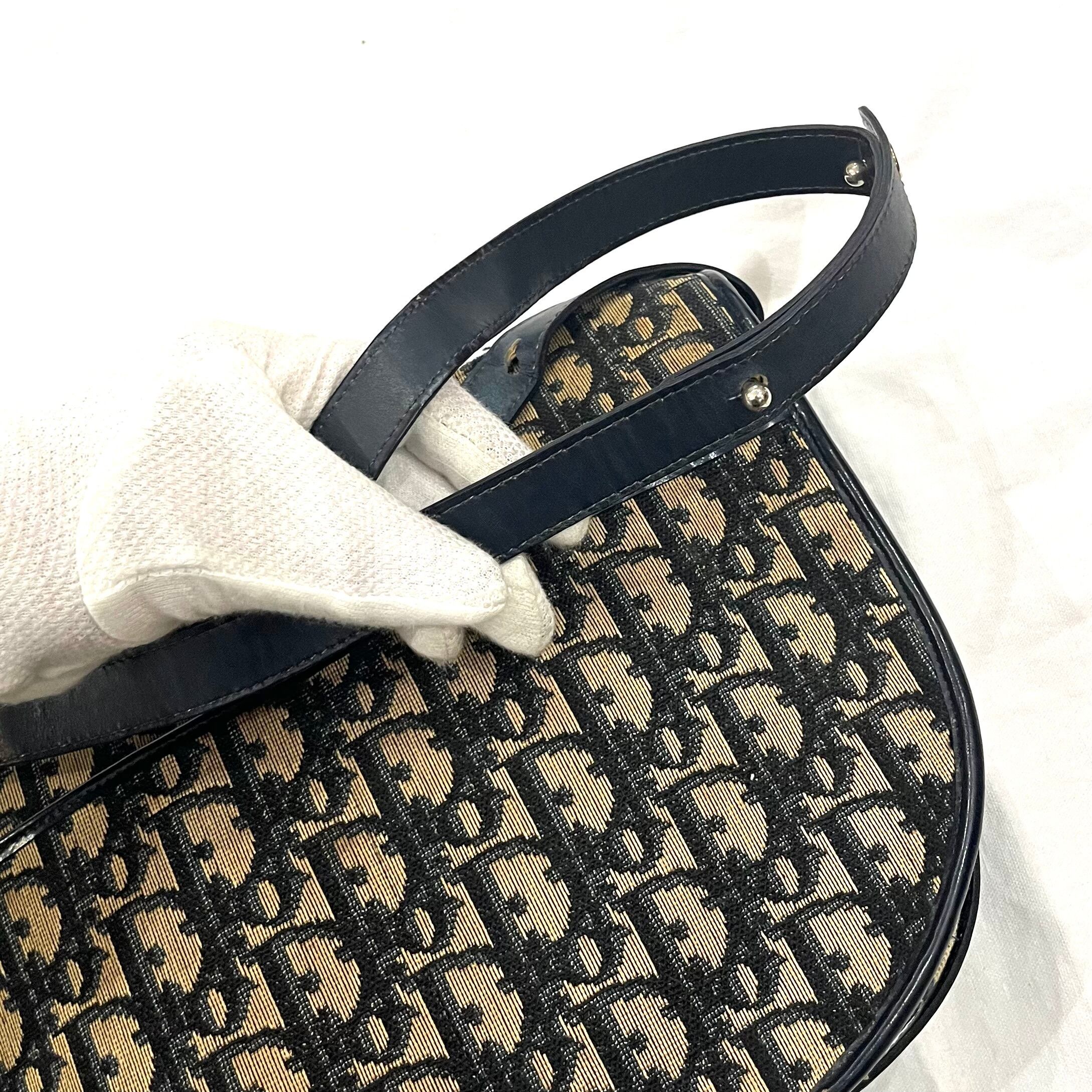 1862 【Christian Dior 】名品 DIOR ディオール ヴィンテージ トロッター柄 2way ショルダーバッグ ネイビー ゴールド金具 オブリーク