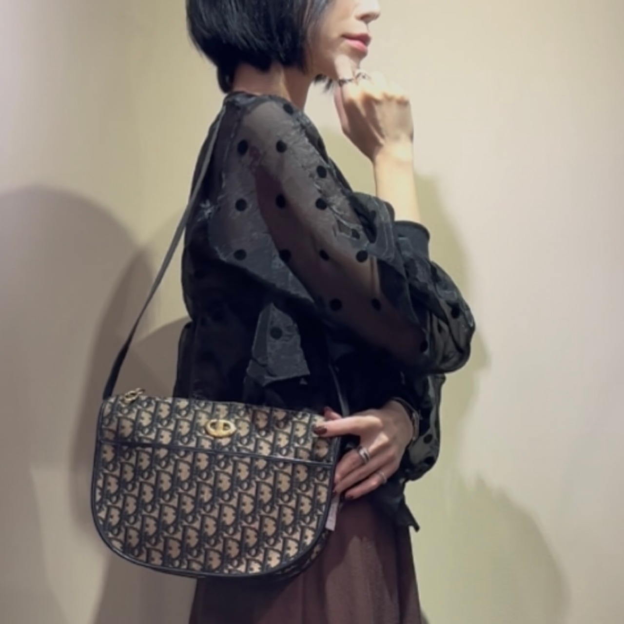 DIOR / ディオール トロッター / ディオール ヴィンテージ / ショルダーバッグ レディース / ショルダーバッグ メンズ / ユニセックス バッグ / ネイビー ショルダー / ゴールド金具 バッグ / 斜めがけバッグ / 福岡 ヴィンテージショップ / 天神ヴィンテージショップ バッグ