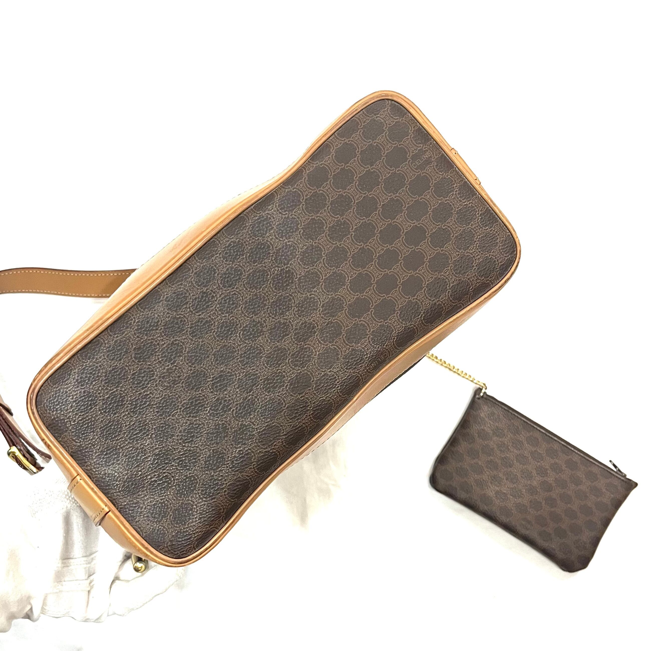 【CELINE】1868 OLD CELlNE マカダム柄 ドローストリングショルダーバッグ ポーチ付き ブラウン 巾着ショルダーバッグ 大容量 ブラゾン オールドセリーヌ福岡