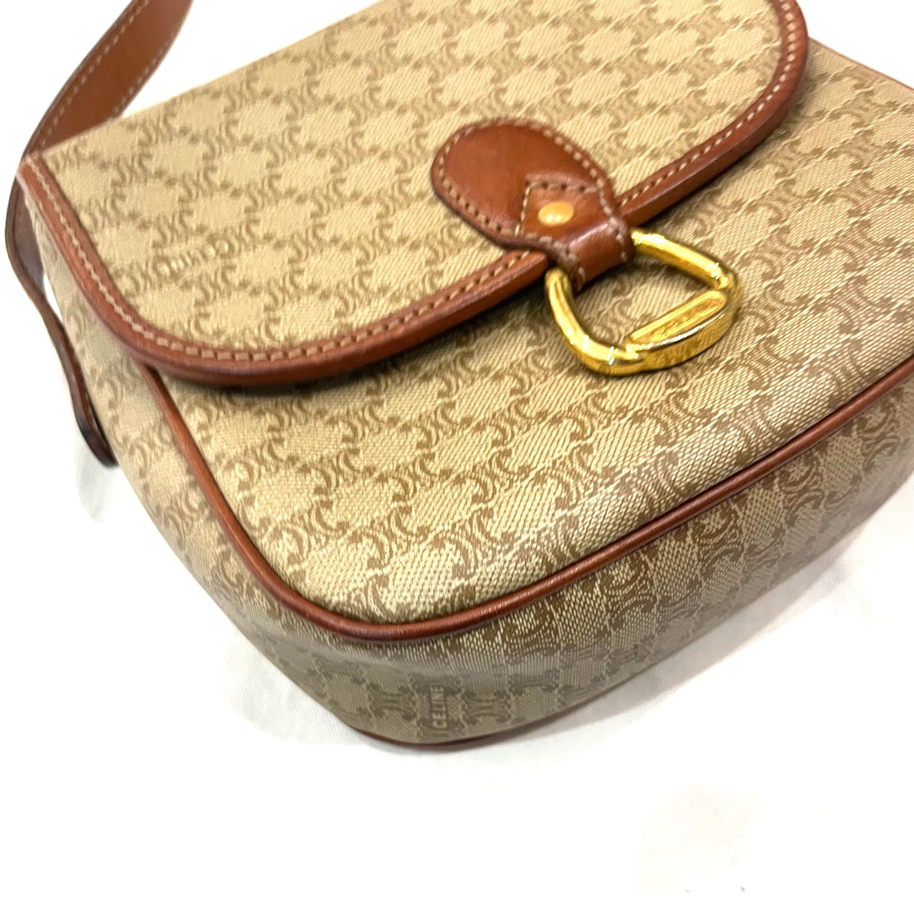 CELINE/セリーヌ/セリーヌヴィンテージ/セリーヌショルダーバッグ/セリーヌマカダム/ヴィンテージバッグ/ヴィンテージセリーヌ/ゴールド金具バッグ/斜めがけバッグ/ミニショルダー/ユニセックスバッグ/ベージュバッグ/ブラウンバッグ/秋冬コーデ/大人ファッション/福岡ヴィンテージショップ/天神ヴィンテージ/博多ヴィンテージ