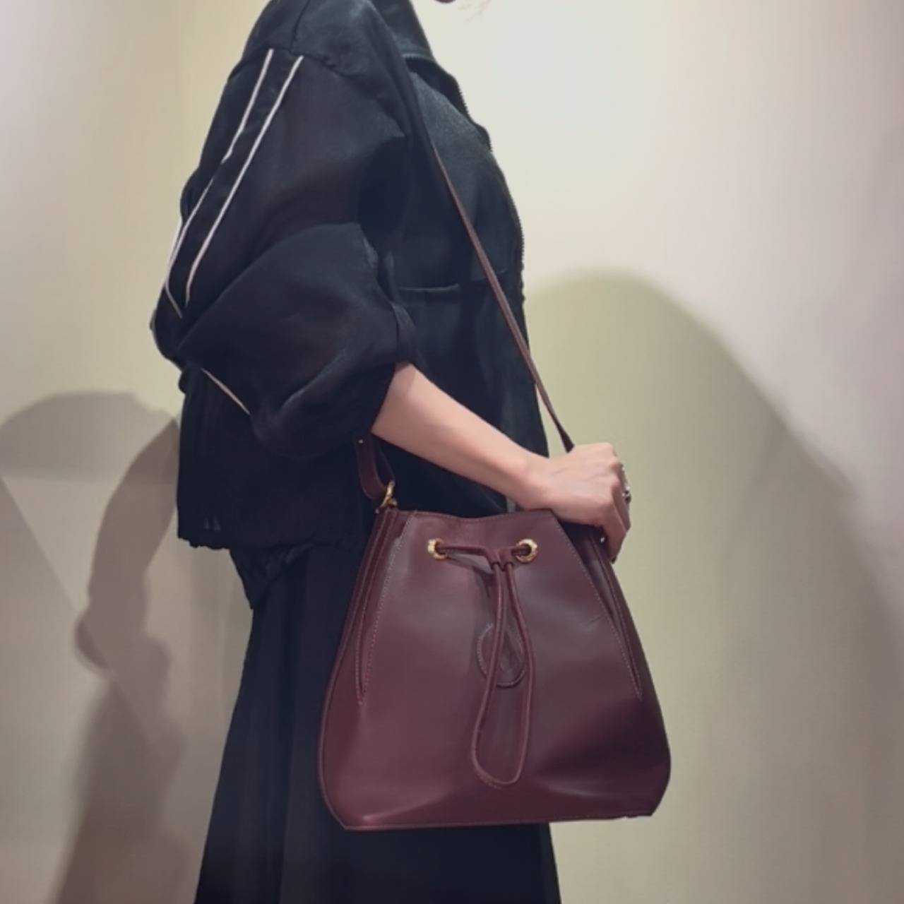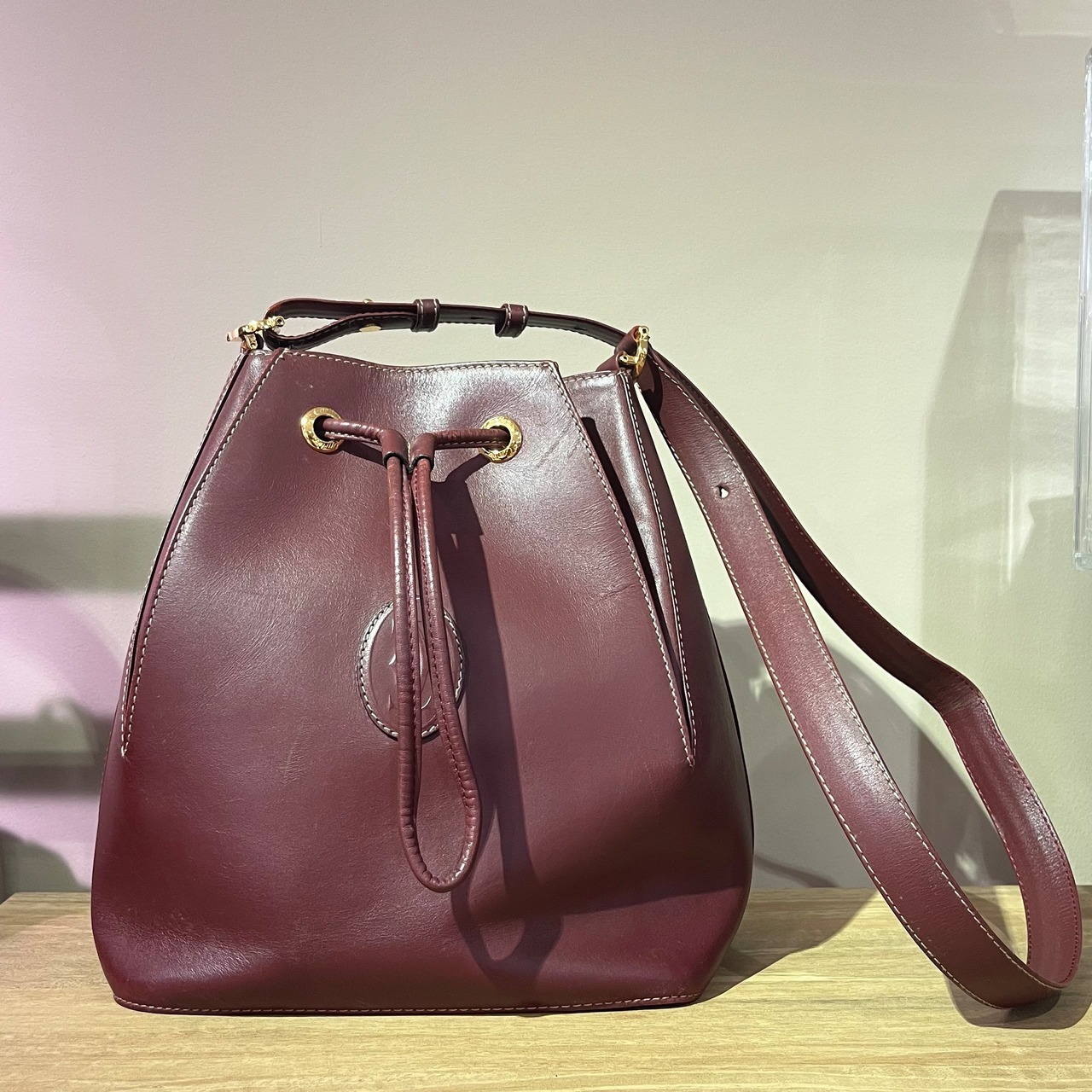 Cartier/カルティエ/カルティエバッグ/カルティエヴィンテージ/ヴィンテージバッグ/巾着バッグ/ショルダーバッグ/レザーバッグ/ボルドーバッグ/ゴールド金具/ユニセックスバッグ/秋冬コーデ/大人ファッション/エレガントバッグ/福岡ヴィンテージショップ/天神ヴィンテージ/博多ヴィンテージ