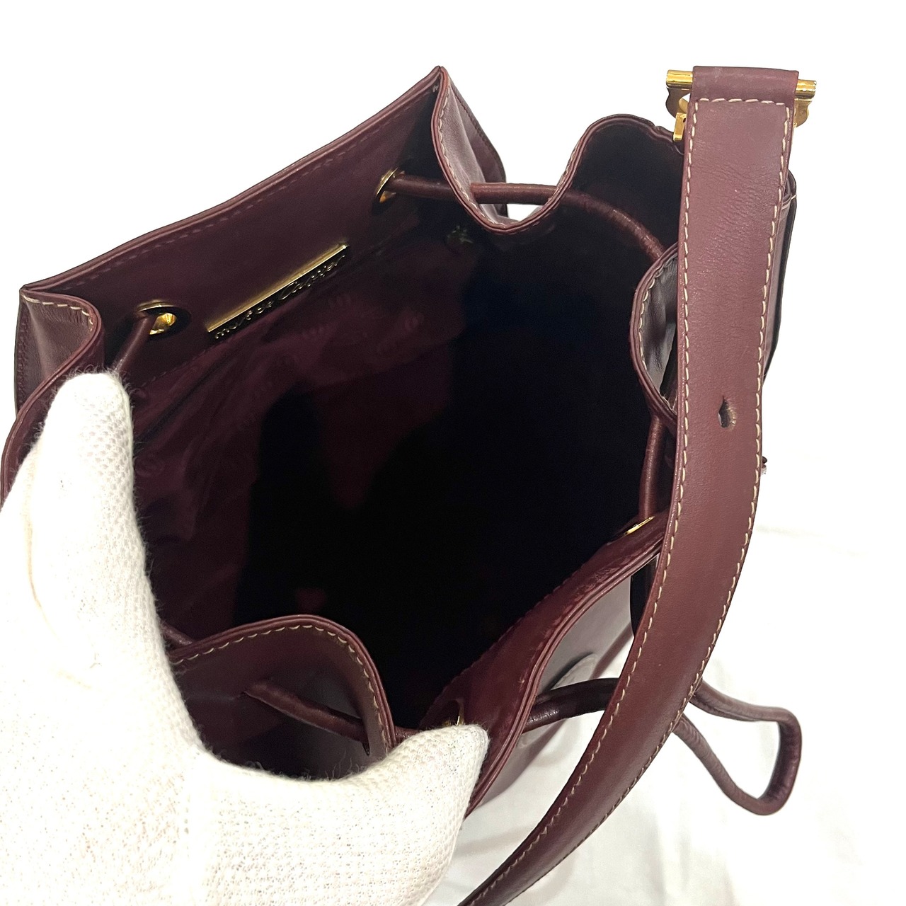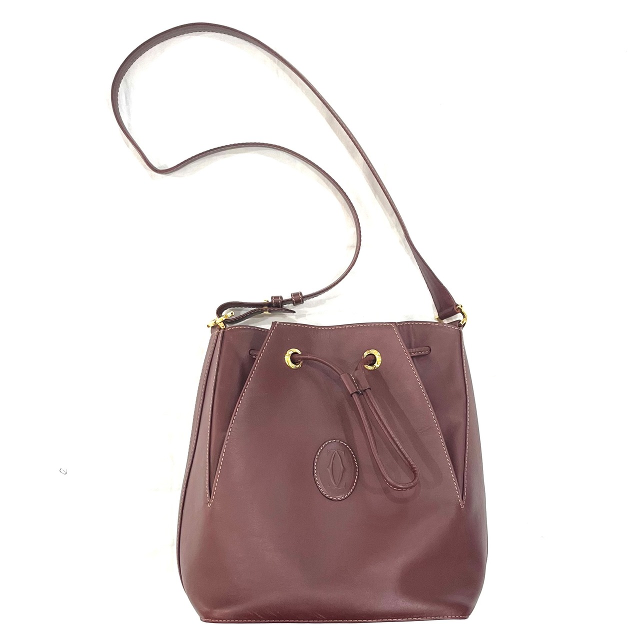 【Cartier/カルティエ】1861 ヴィンテージ ドローストリング 巾着ショルダーバッグ ボルドー レザー ゴールド金具 軽量 大容量 本革 cartier カルティエ 巾着ショルダーバッグ ボルドーバッグ