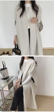 ノースリーブのマントシルエットが特徴で、ふんわりと体を包みながらも軽やかに着こなせるデザインです。