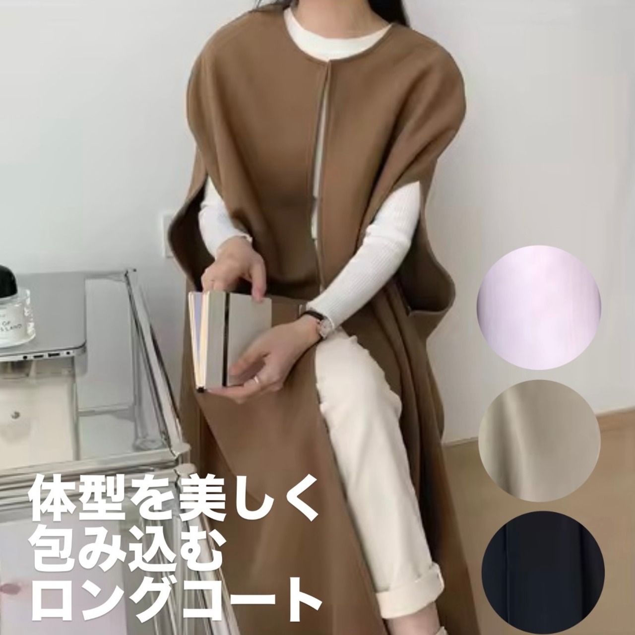 ベーシックを纏う。【ケープポンチョ】ウール混 上質マントコート レディース ロングコート 秋冬アウター 体型カバー ワンサイズ オフホワイト/ブラウン/ピンク/ブラック