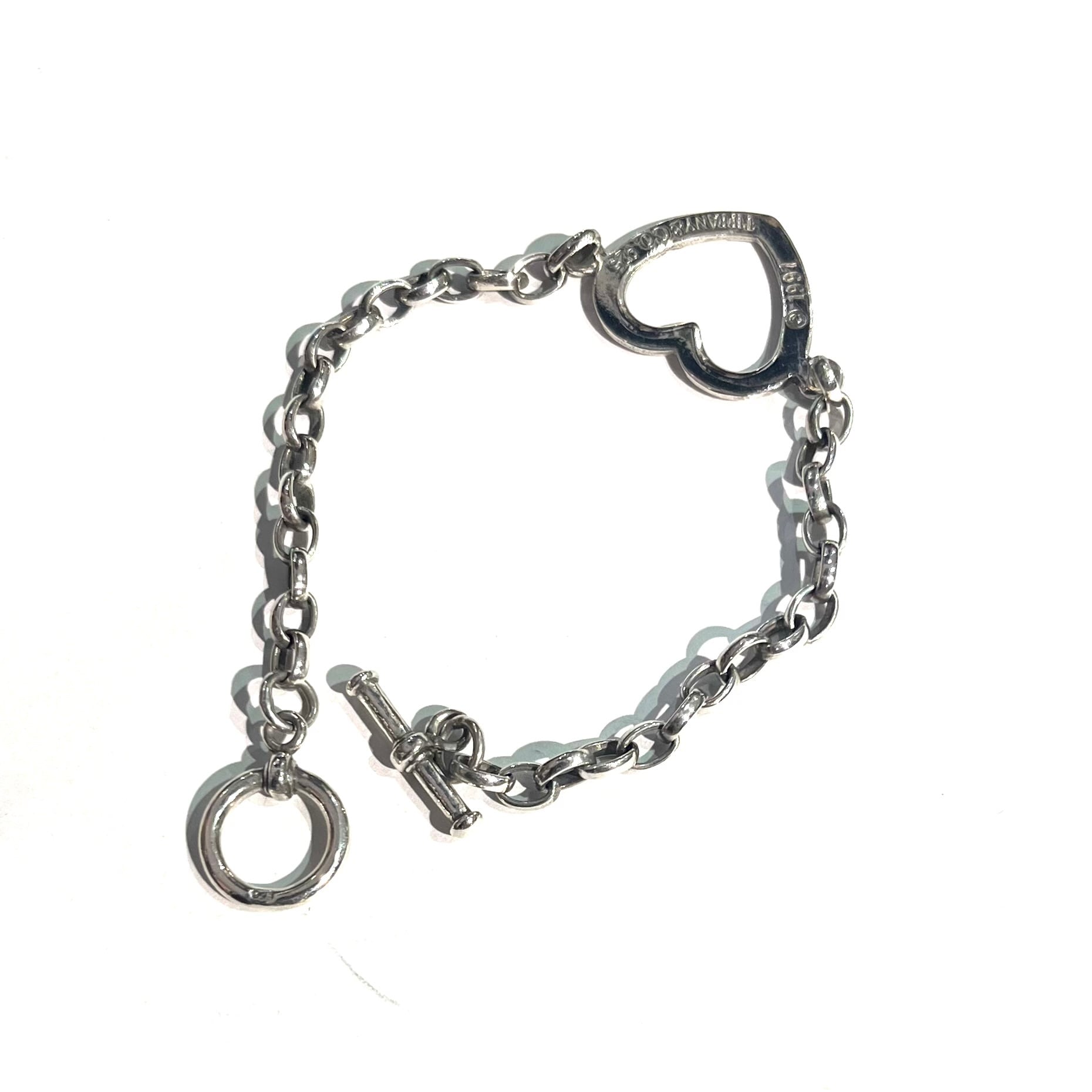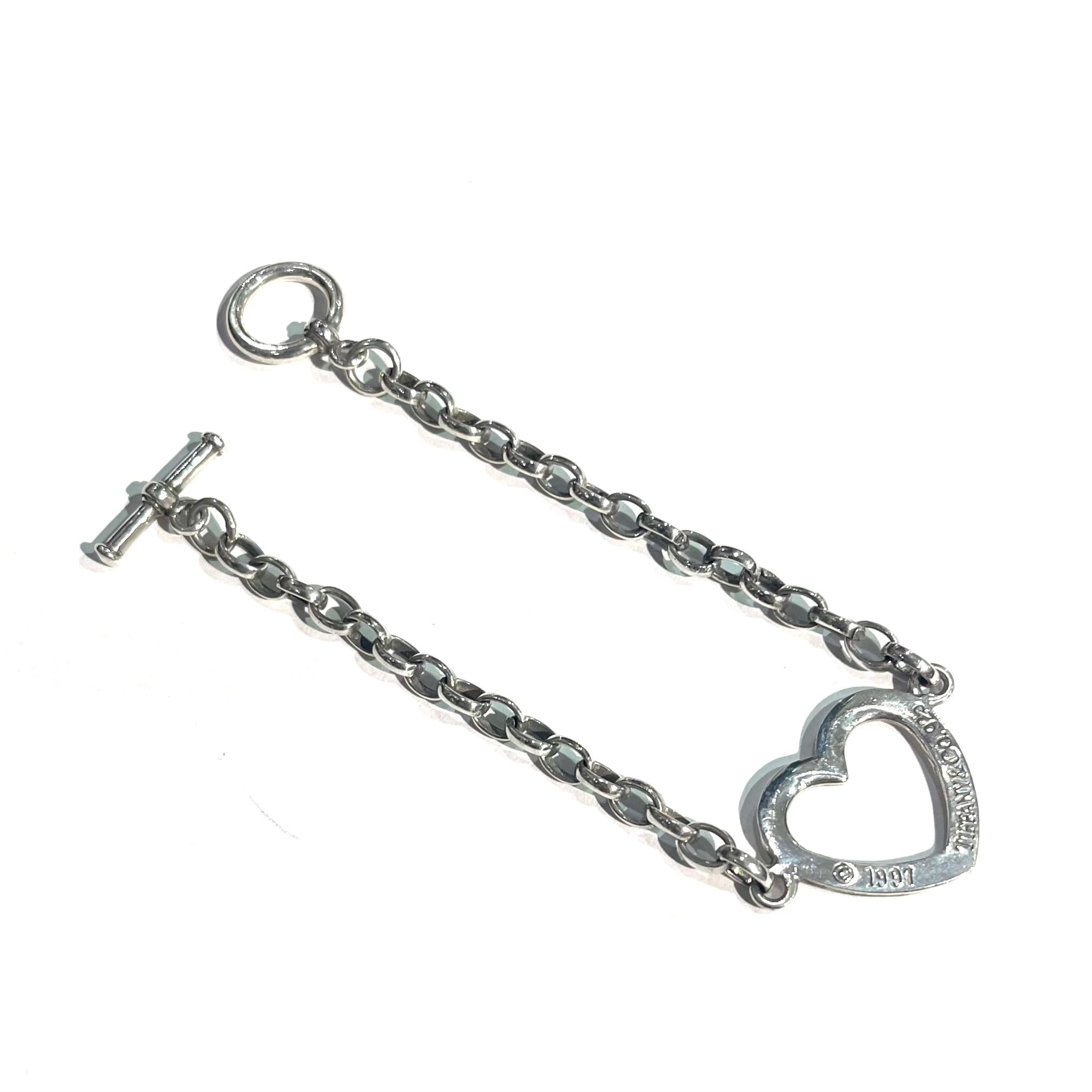 【TIFFANY&CO. ティファニー】1871 TIFFANY &CO ヴィンテージ オープンハート Tバーブレスレット 1991年刻印 シルバー925 全長18.5cm ハートモチーフ2cm トグルクラスプ レディース メンズ ユニセックス メンズブレス シルバー925 メンズブレス