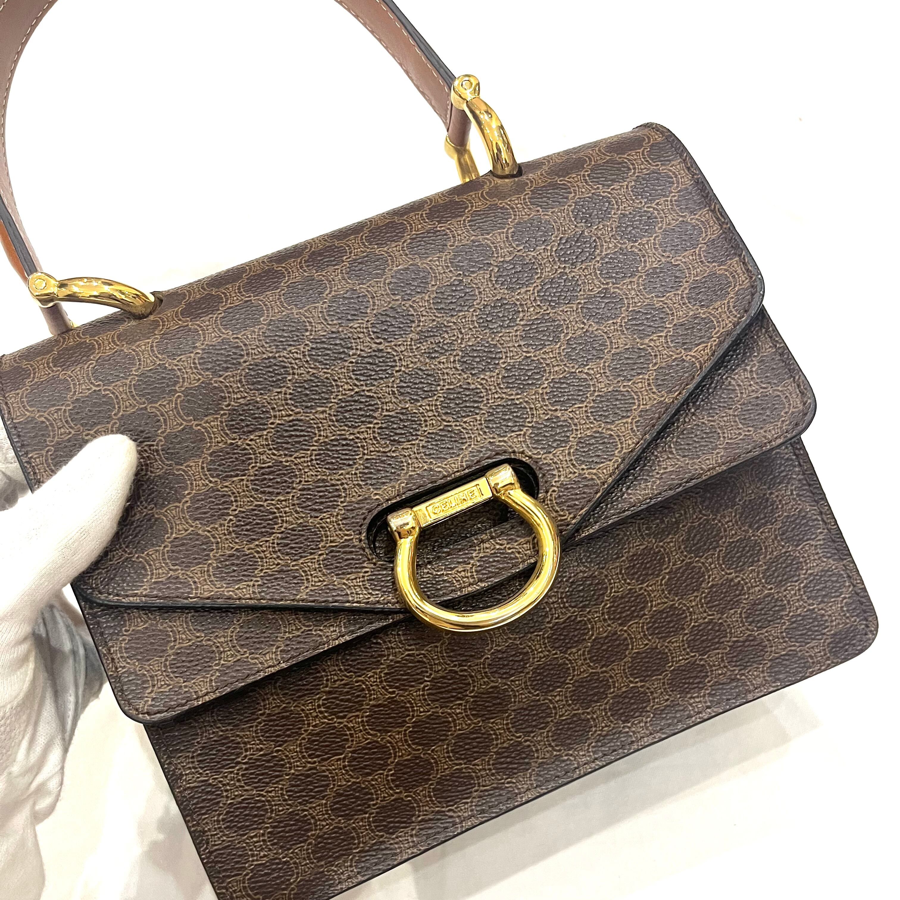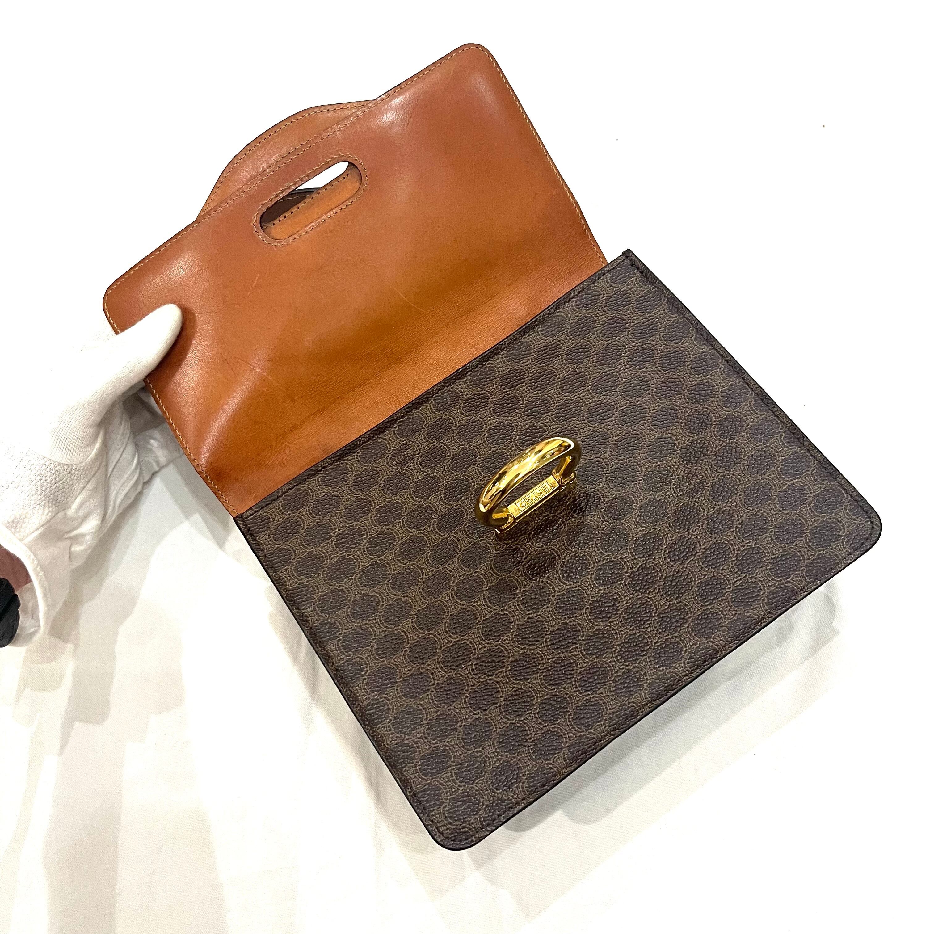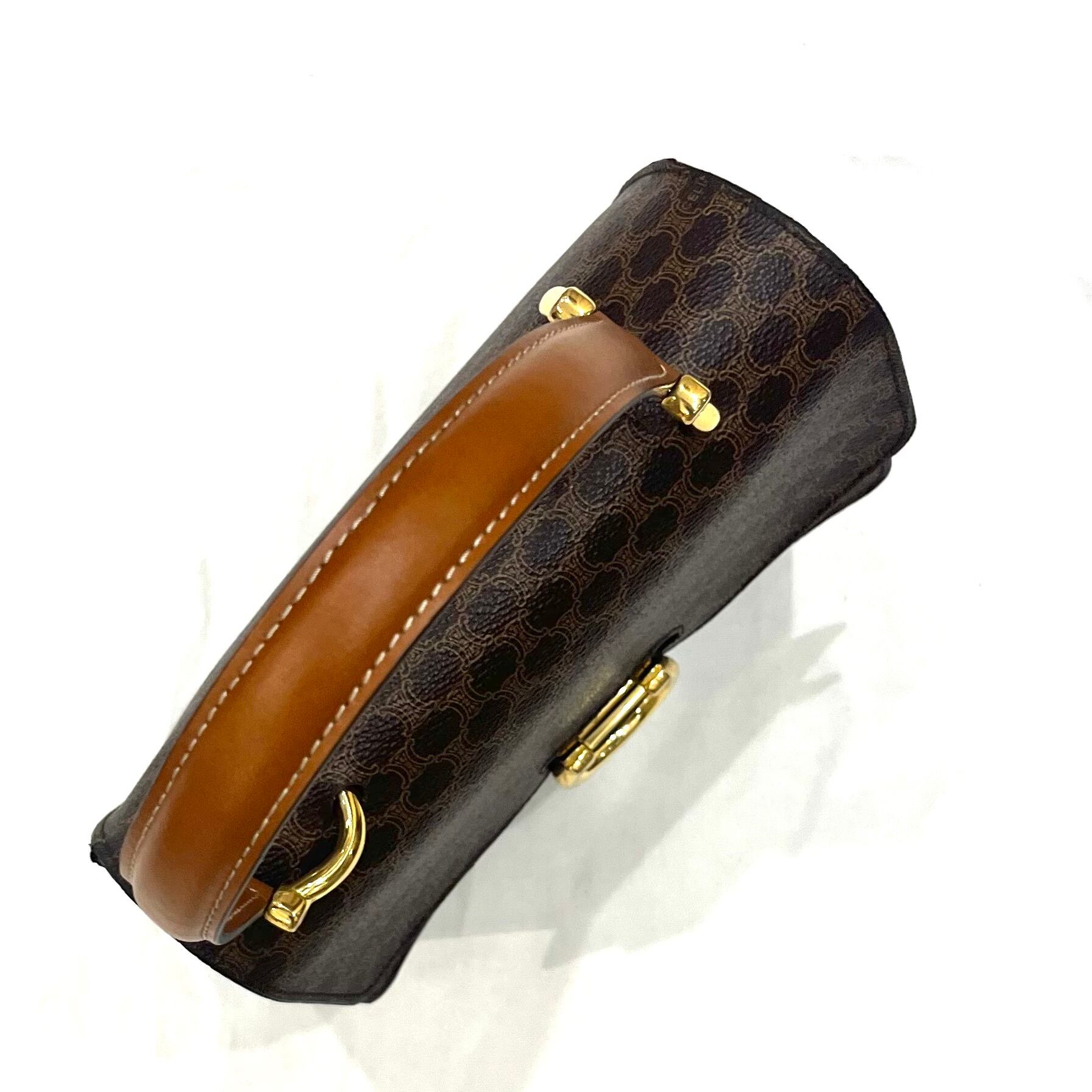 【CELINE】1860 セリーヌ マカダム柄 二重フラップ ハンドバッグ ブラウン レザー×PVC ゴールド金具 ヴィンテージ人気 二重蓋 oldceline 福岡