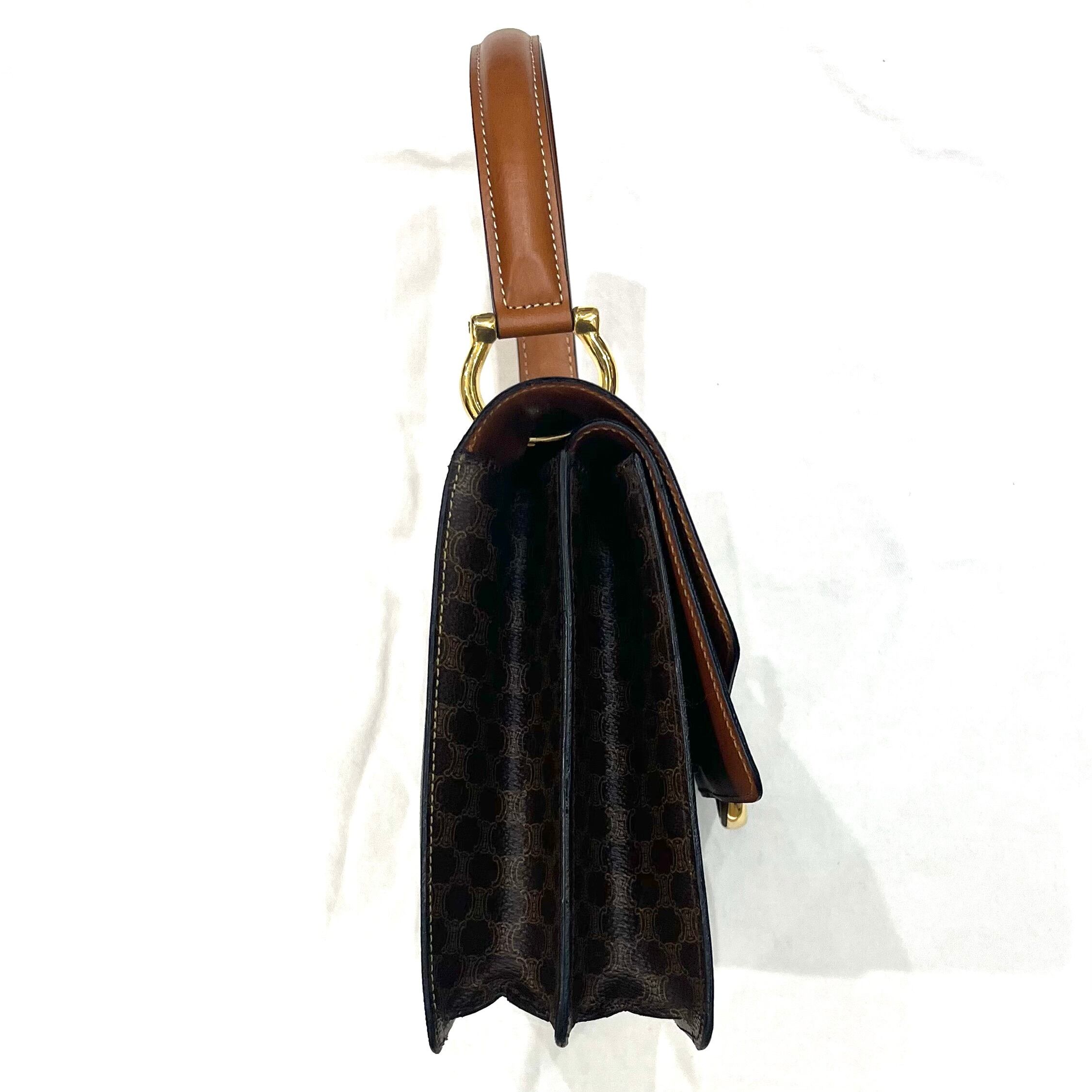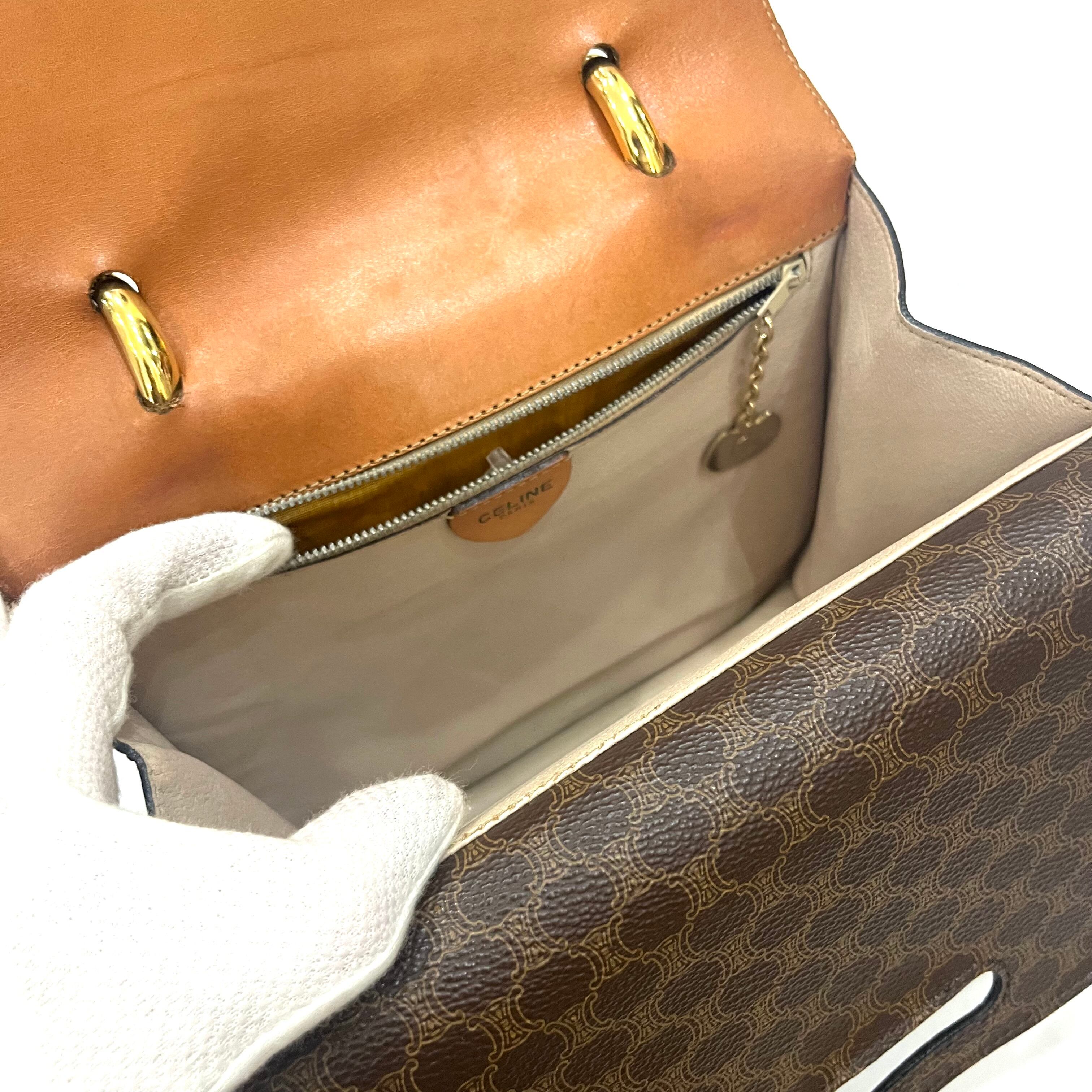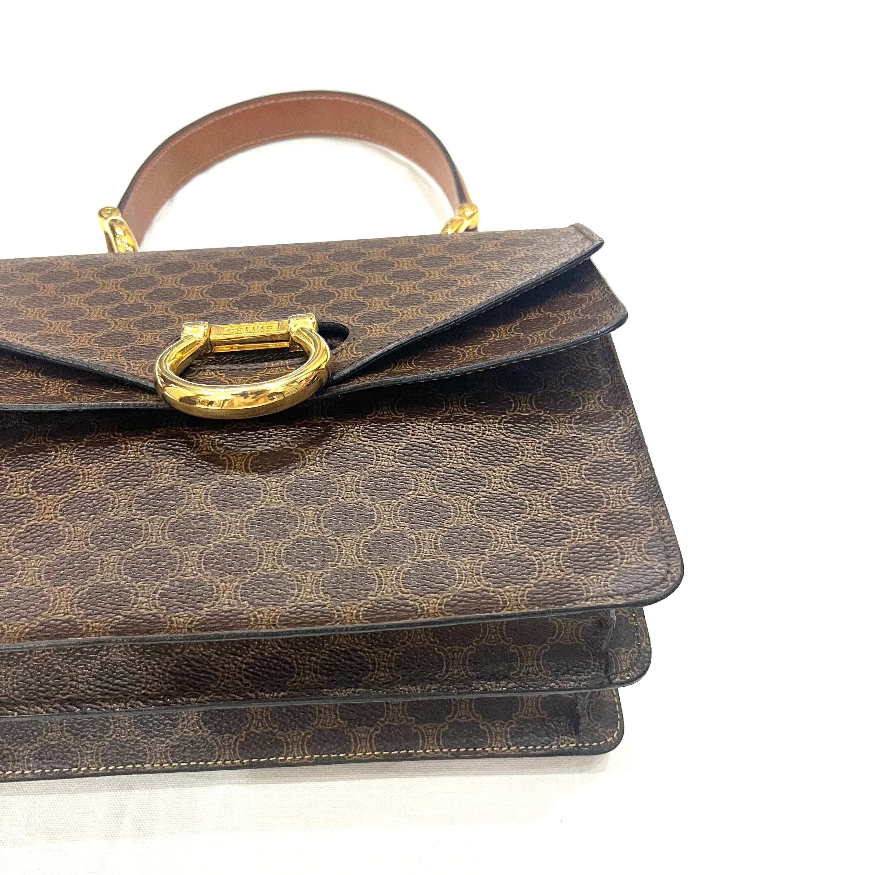 【CELINE】1860 セリーヌ マカダム柄 二重フラップ ハンドバッグ ブラウン レザー×PVC ゴールド金具 ヴィンテージ人気 二重蓋 oldceline 福岡