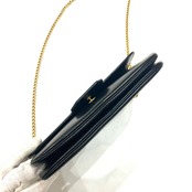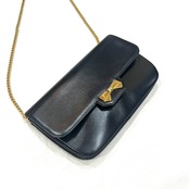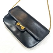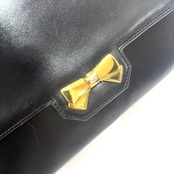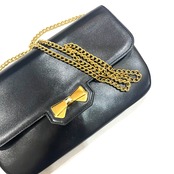 【NINA RICCI】本革ヴィンテージ チェーンショルダーバッグ ブラック レザー ゴールドリボン金具 パリ老舗ブランド Wチェーンバッグ 1879