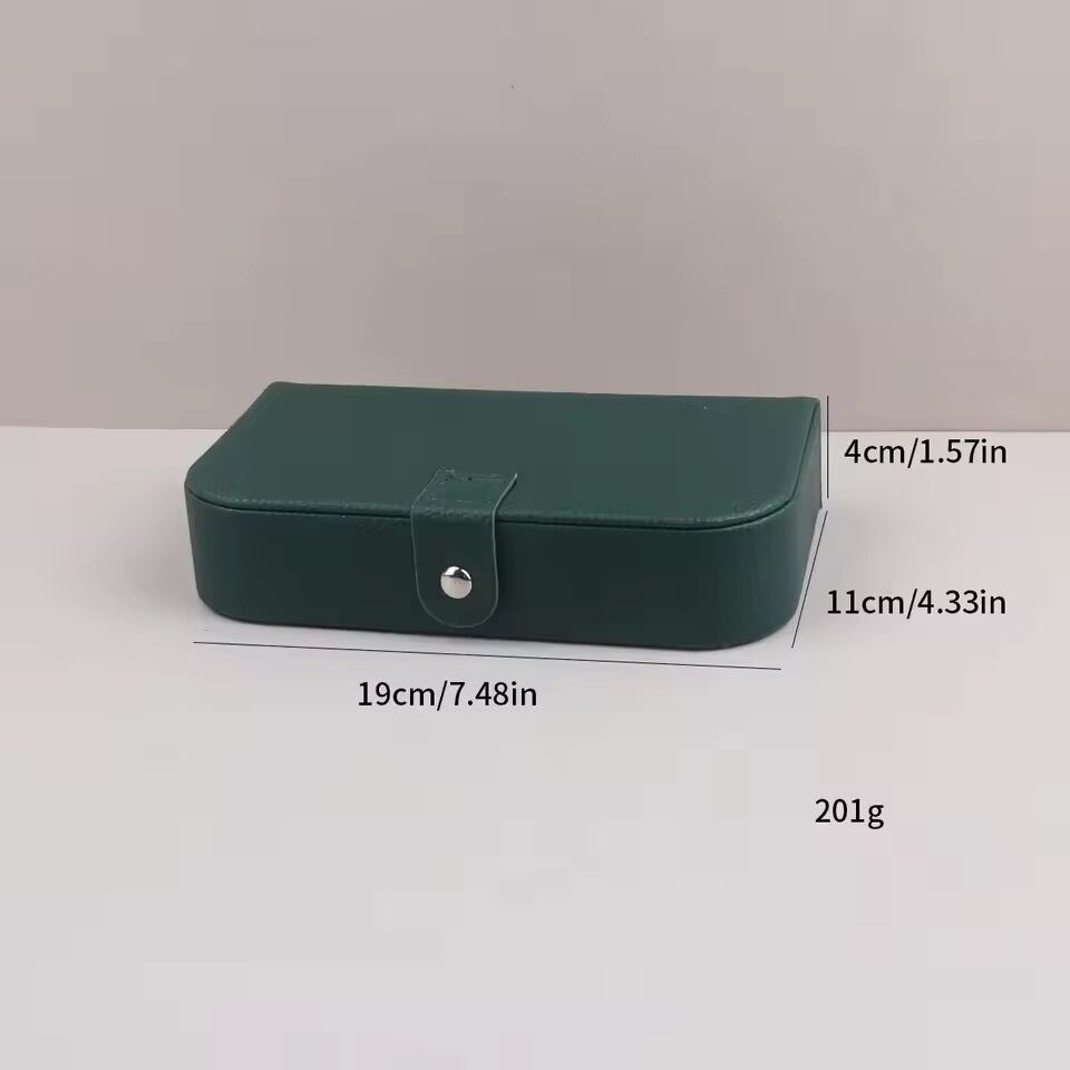落ち着いたレザー調デザインの長方形ジュエリーボックス。