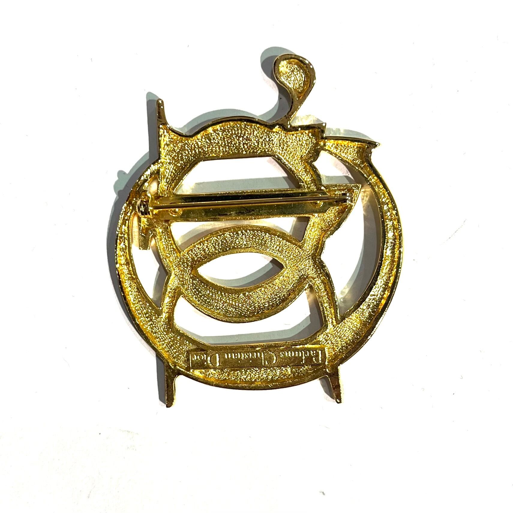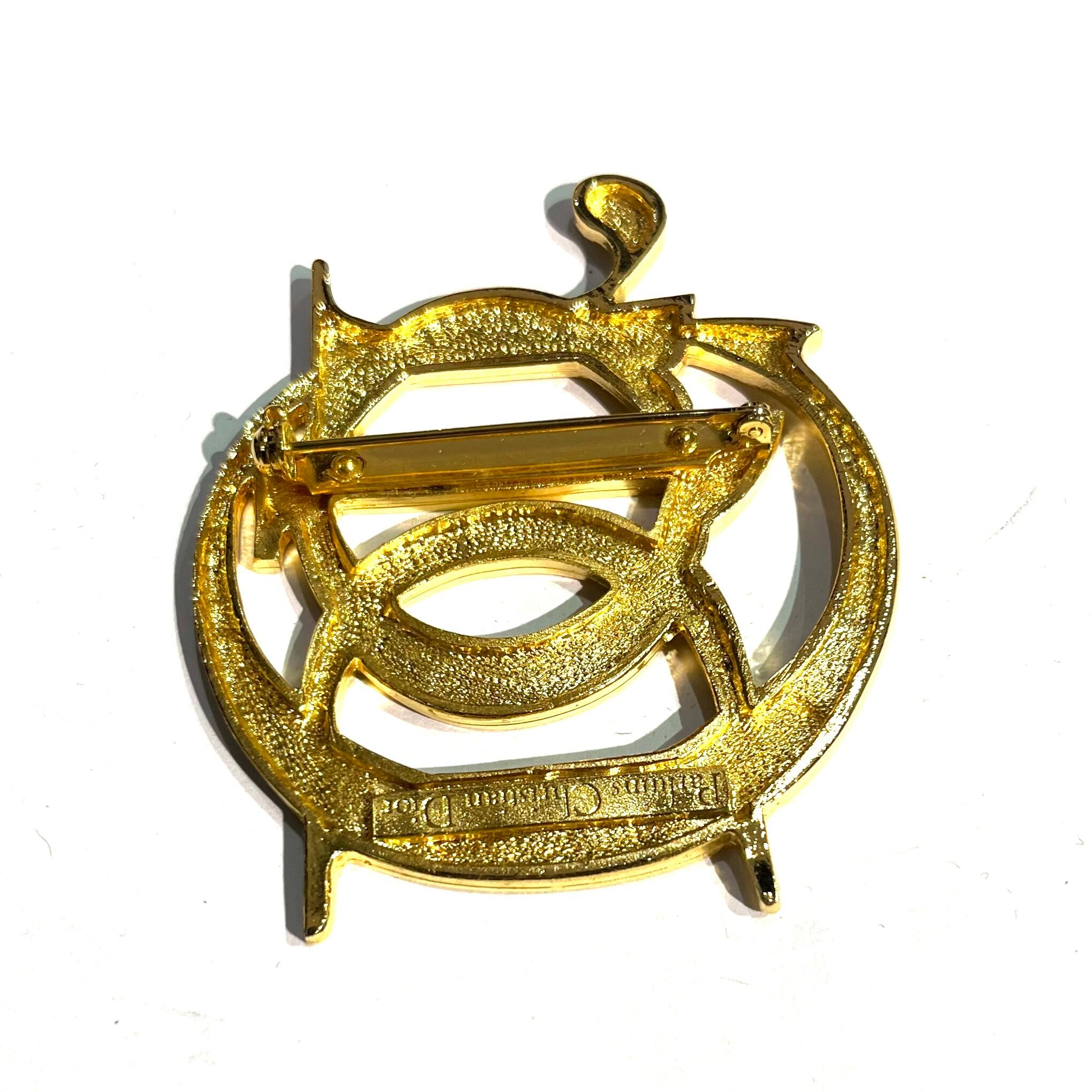 1881 【Christian Dior】 ロゴブローチクリスチャンディオール ヴィンテージ アンティーク アクセサリーリボン ストーン 結婚式 ブライダル90年代 丸 パフューム dior 秋冬ファッションアウター バッグ コート