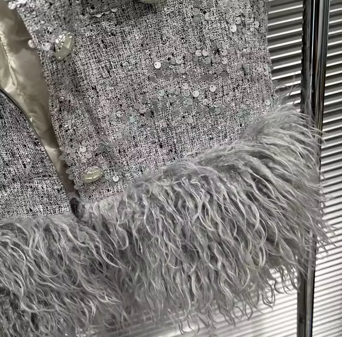 エコフェザー ツイード スパンコールデザインベスト ベスト 可愛い お洒落 秋冬 秋冬コーデ 大人コーデ