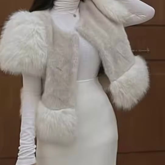 毛足の長いエコウール素材を使用した、ふわふわのリアルファータッチベスト。