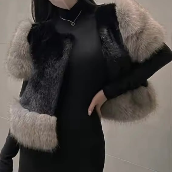 最高にお洒落【リアルファータッチ バイカラーベスト】ふわふわ羽織りアウター/秋冬ファッションに映える上品エコウール/ニットやワンピに重ねて華やかコーデ/M・Lサイズ