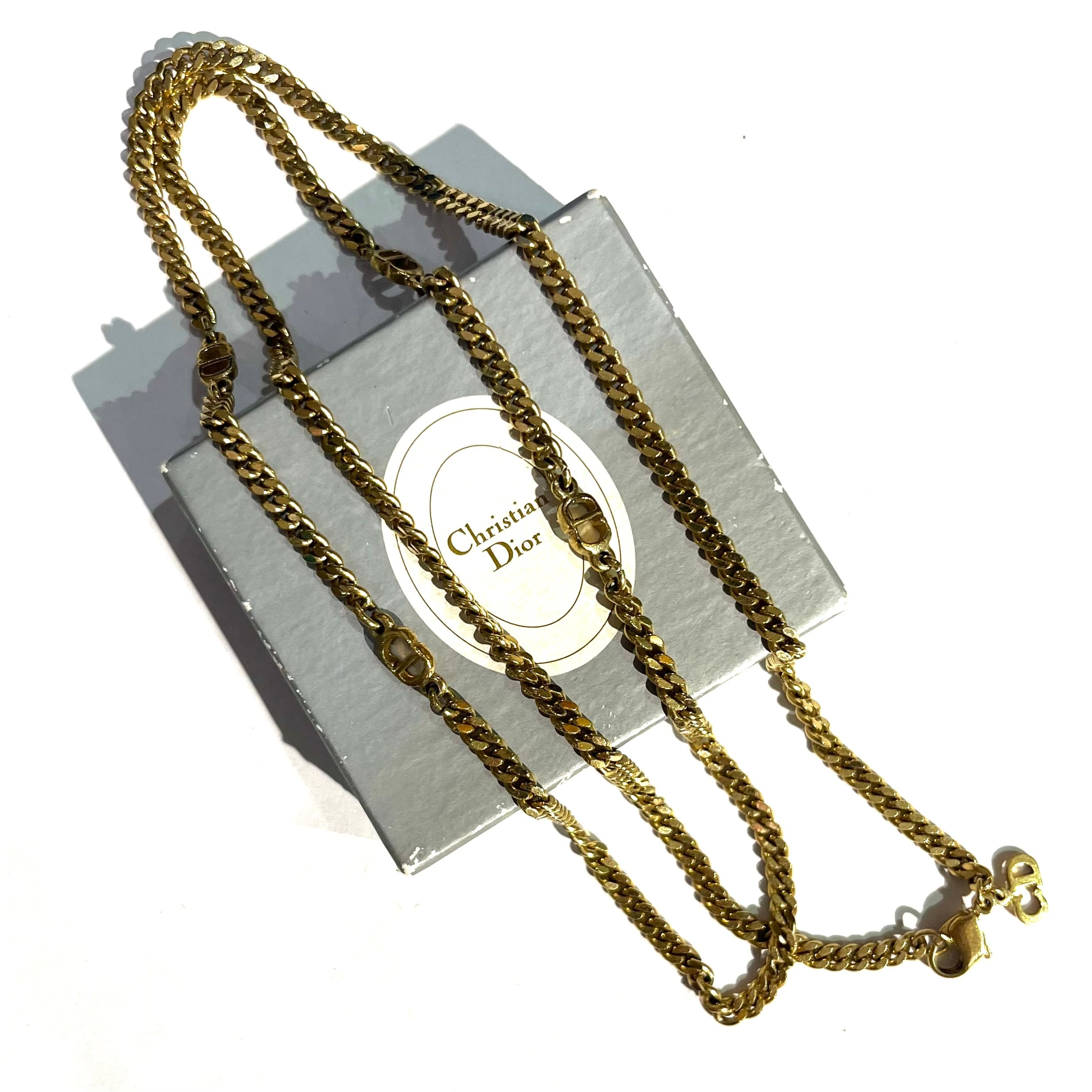 【Christian Dior】1905 VINTAGE W巻出来るロングCDロゴチェーンネックレス ディオール ヴィンテージ アンティーク オータムセール ゴールド喜平フラット ロングネックレス