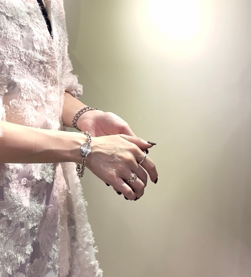 ・手元を印象づける立体的なチェーンと存在感のあるオーバルタグ。