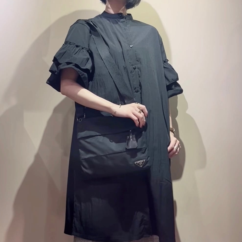 【PRADA】デザインプラダナイロン ショルダーバッグ/メンズバッグ ブラック/トライアングルロゴ/ユニセックス/調整可能ストラップ/ヴィンテージ プラダメンズバッグ軽量大容量斜めがけ