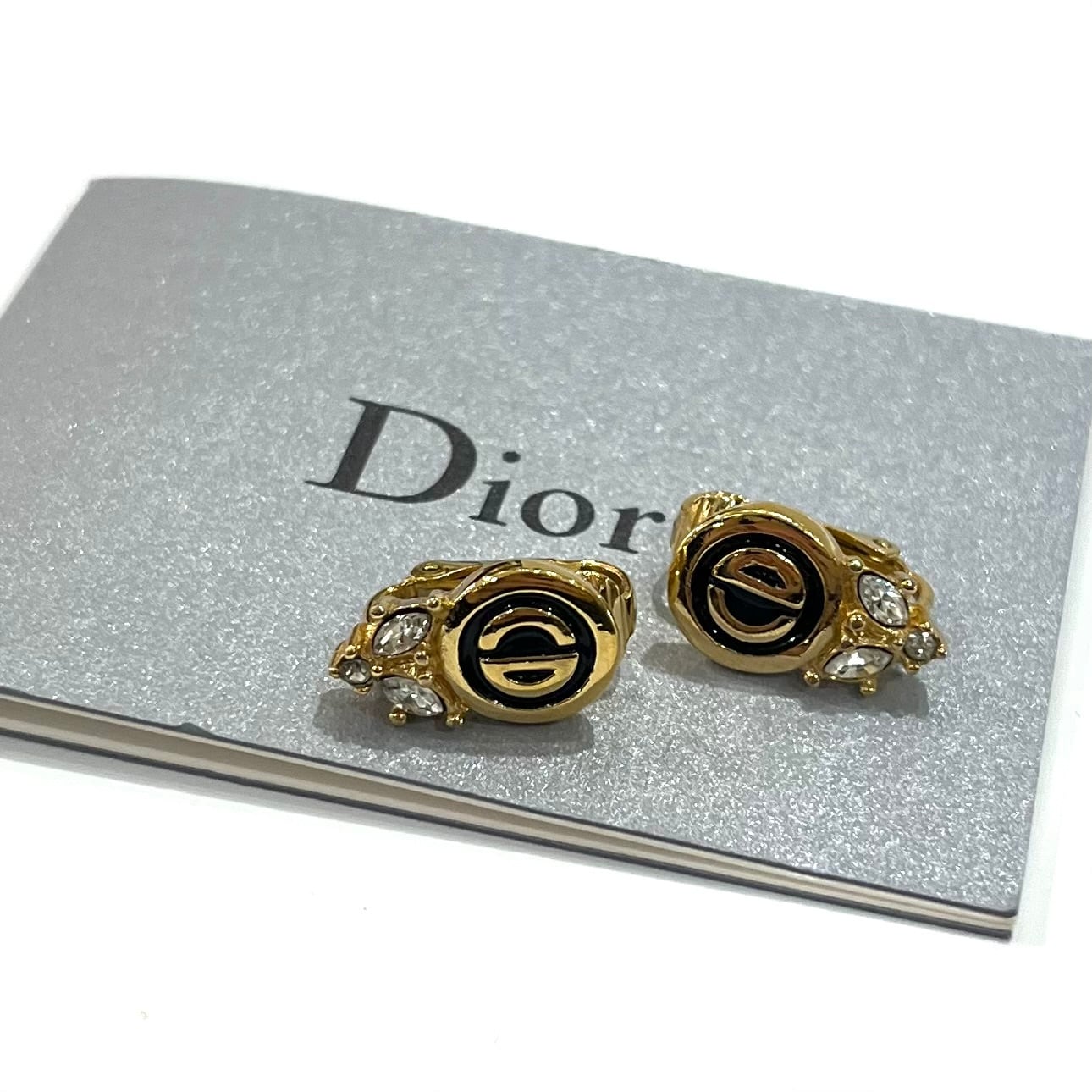 【Christian Dior】1913 CD DIOR ロゴ×ラインストーン イヤリング/ゴールド×ブラック/1.2cm/ヴィンテージ ディオール アクセサリー 華奢アクセサリー モード クラシック